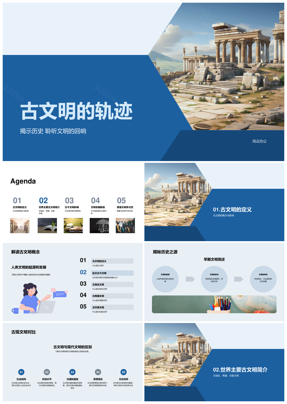 风云办公提供的古埃及古希腊古印度文明影响现代发展PPT模板,下载格式为pptx,一共23页,作品中文字及图均可以修改和编辑,图片更改请在作品中右键图片并更换,文字修改请直接点击文字进行修改。