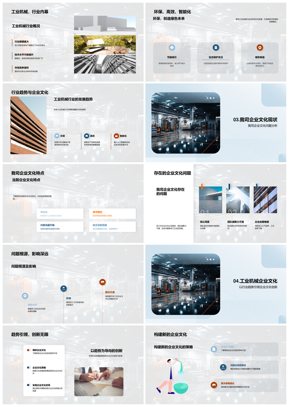 风云办公提供的工业机械企业高效环保智能化文化构建PPT模板,下载格式为pptx,一共23页,作品中文字及图均可以修改和编辑,图片更改请在作品中右键图片并更换,文字修改请直接点击文字进行修改。