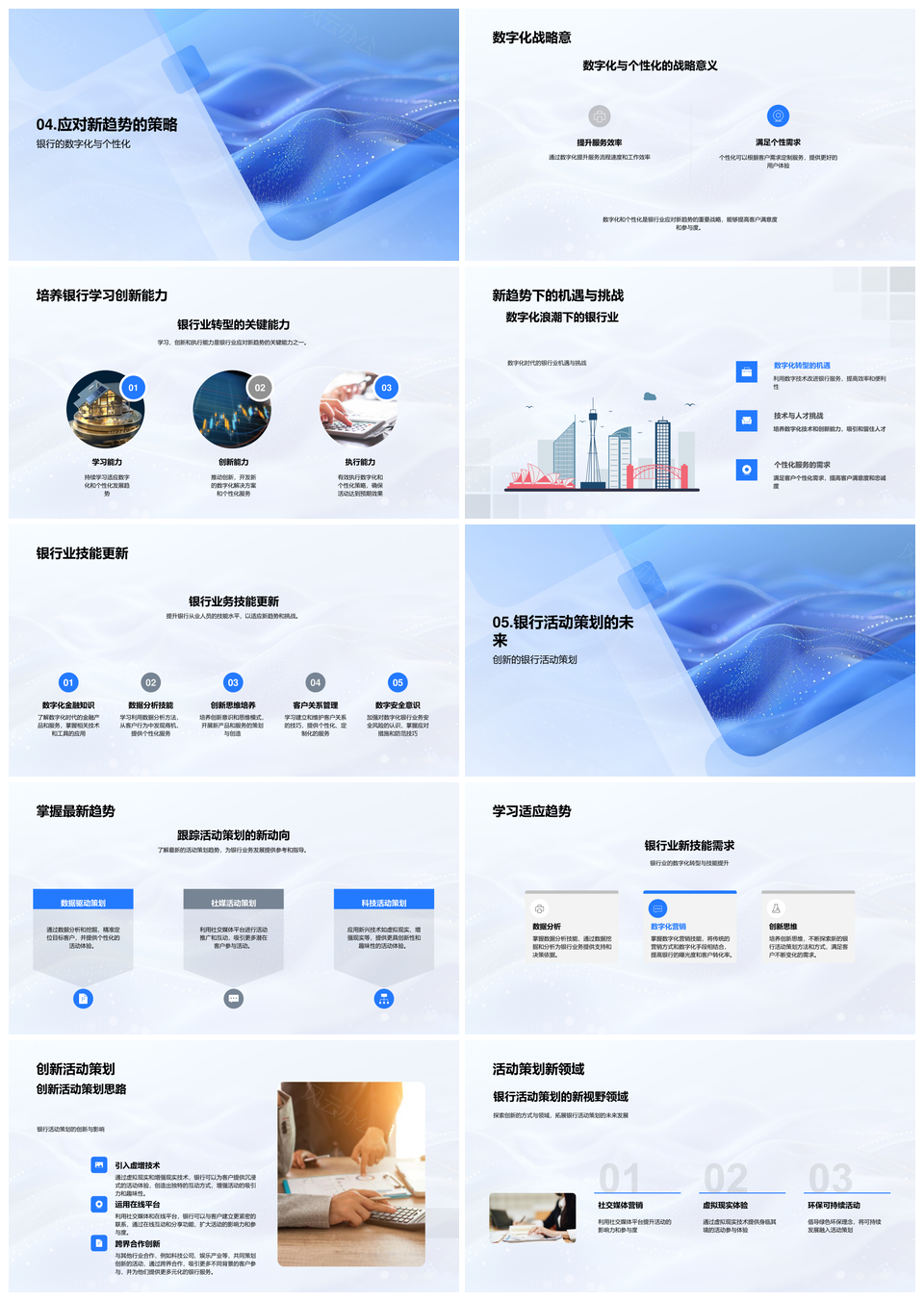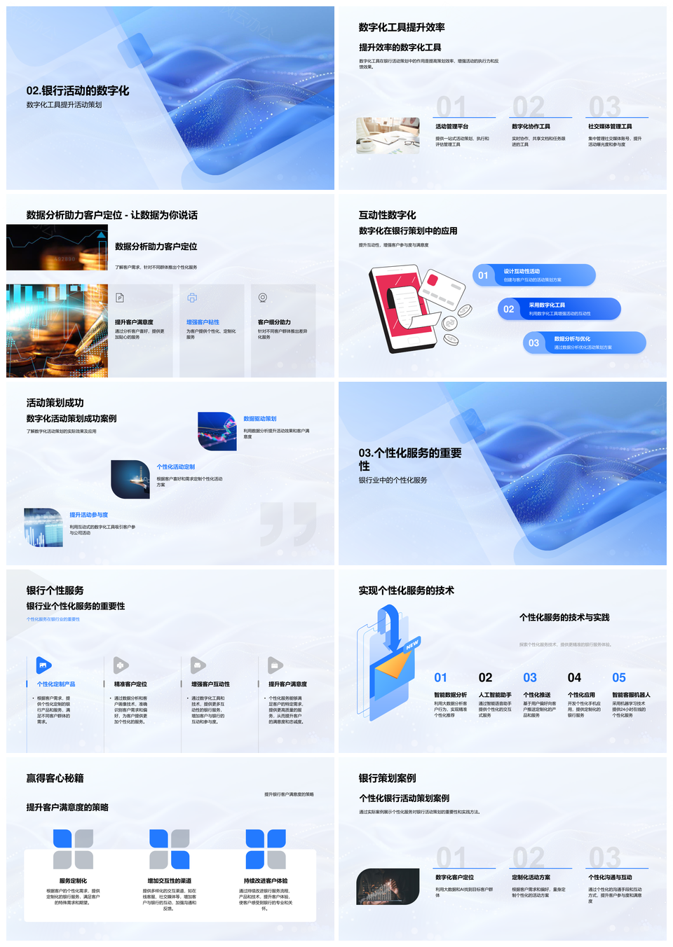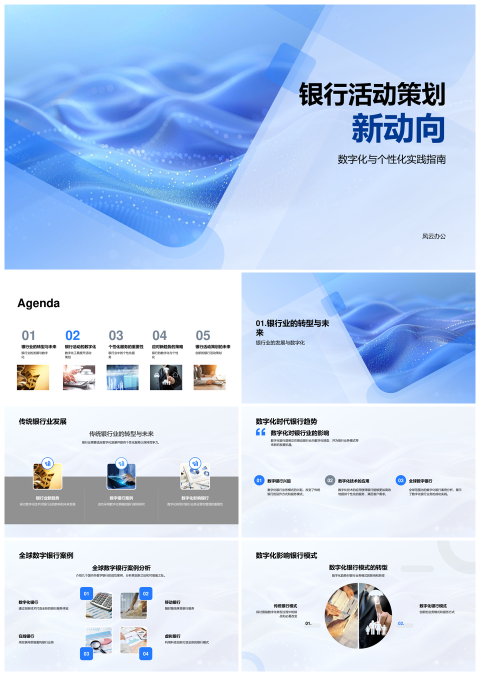 风云办公提供的银行活动策划数字化个性化转型案例PPT模板,下载格式为pptx,一共28页,作品中文字及图均可以修改和编辑,图片更改请在作品中右键图片并更换,文字修改请直接点击文字进行修改。