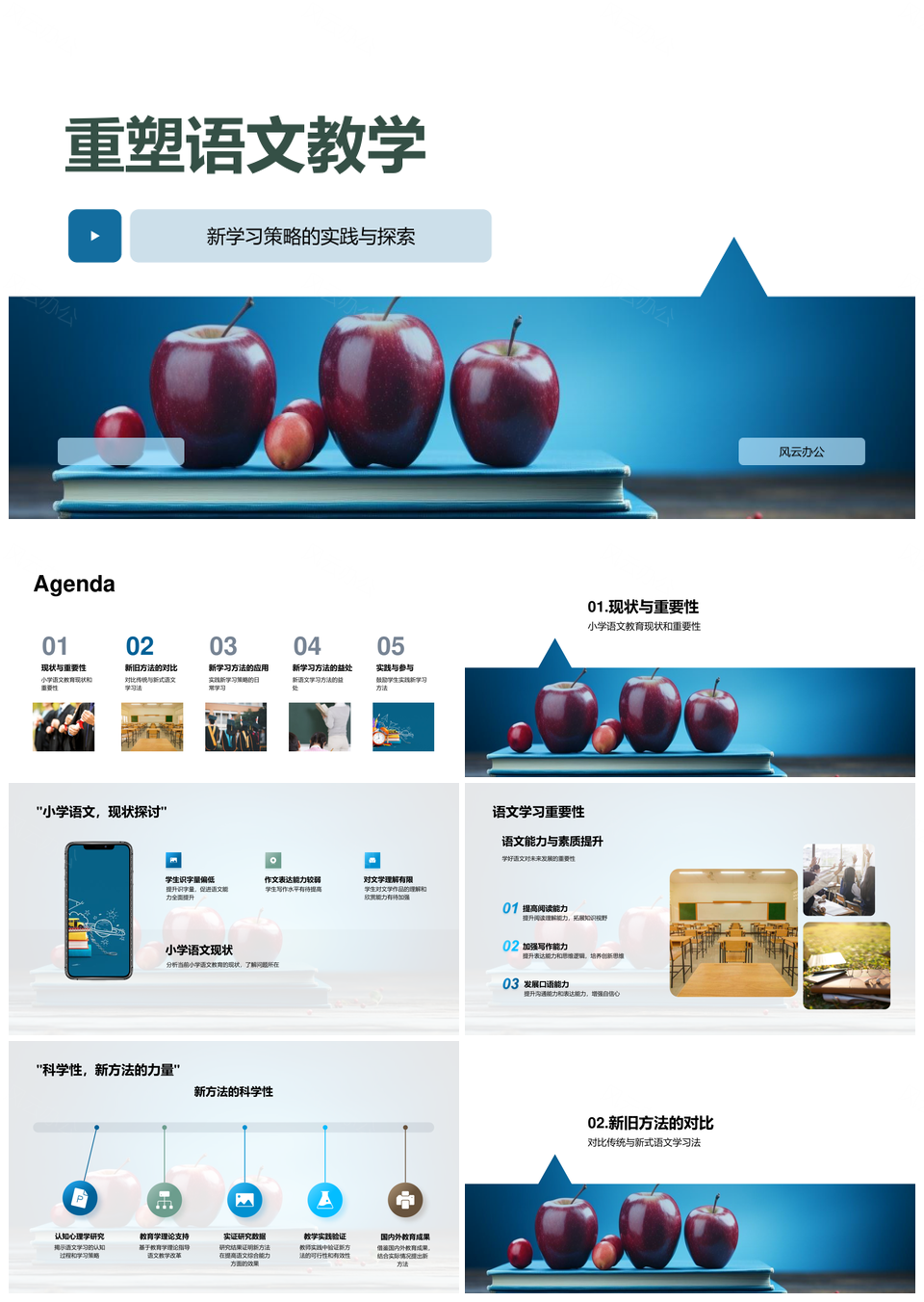 风云办公提供的重塑语文教学新旧策略实践探索PPT模板,下载格式为pptx,一共23页,作品中文字及图均可以修改和编辑,图片更改请在作品中右键图片并更换,文字修改请直接点击文字进行修改。