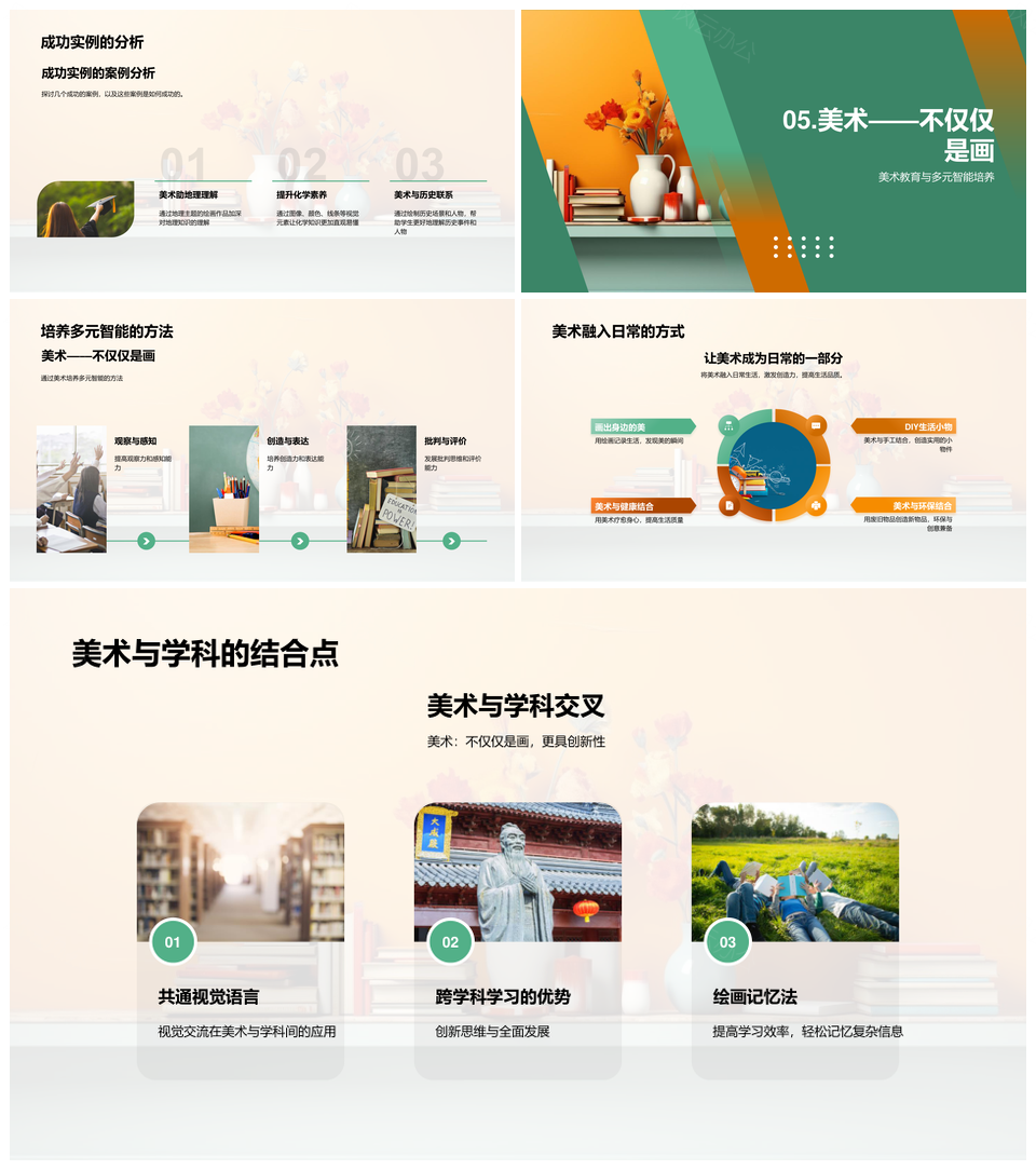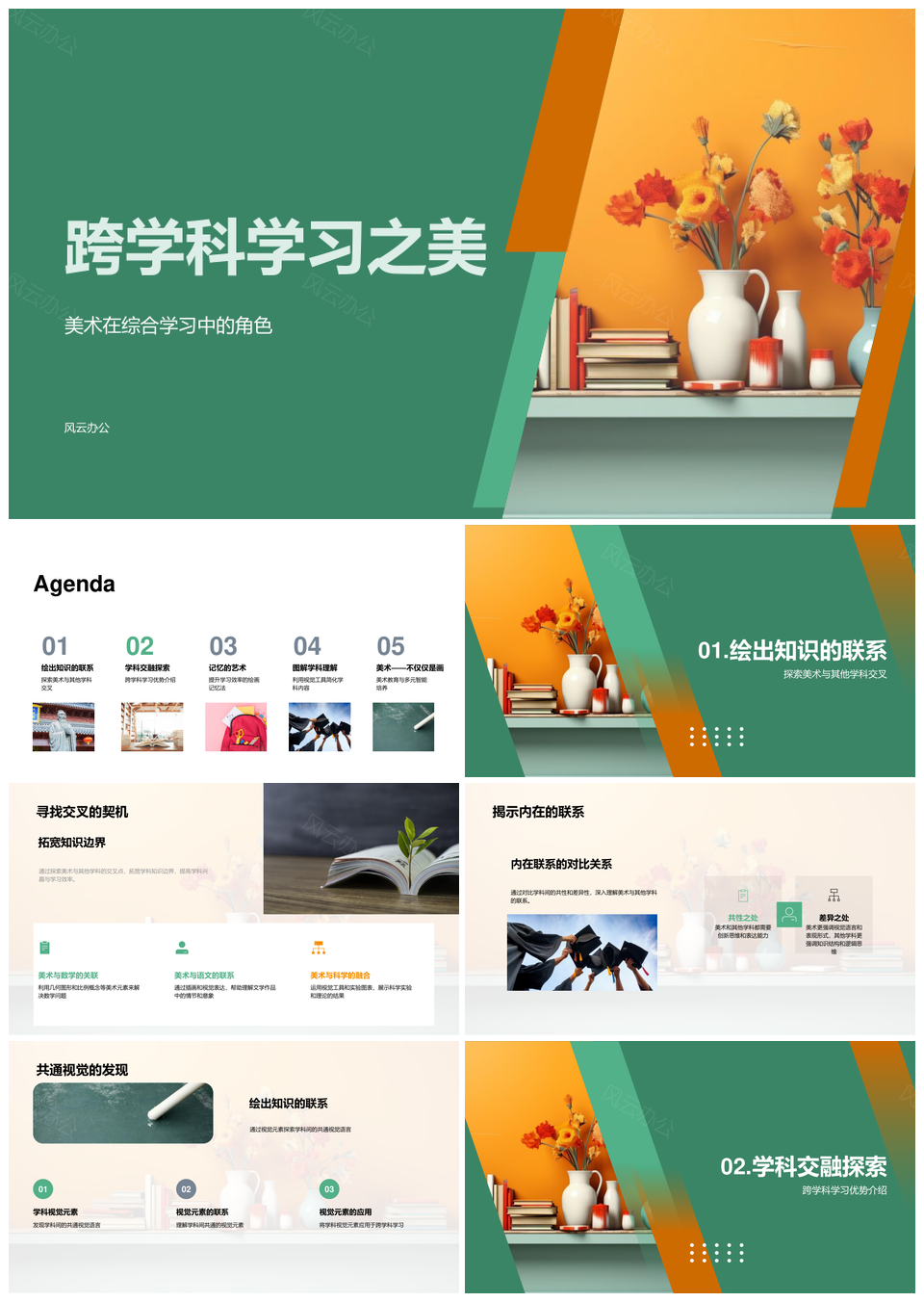 风云办公提供的跨学科美育融合创新思维多元智能PPT模板,下载格式为pptx,一共23页,作品中文字及图均可以修改和编辑,图片更改请在作品中右键图片并更换,文字修改请直接点击文字进行修改。