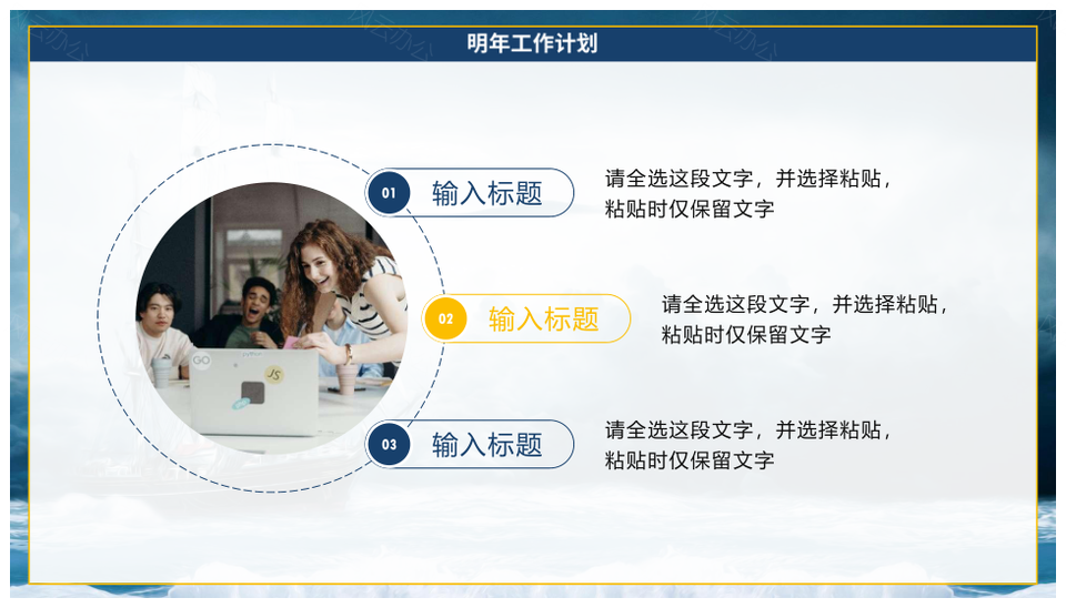 这是一张2025简约商务大海实景扬帆起航年终总结计划PPT模板,包含2025、简约、商务、大海、实景、扬帆起航、年终、总结、计划等主题内容,也可用作简约商务大海实景、扬帆起航年终总结计划、2025简约商务计划、简约商务大海实景扬帆、简约商务大海、商务大海实景、扬帆起航计划、年终总结计划、简约商务年终总结、商务大海扬帆、实景扬帆起航、简约商务计划、大海实景扬帆、扬帆起航、年终总结、商务大海等PPT场景使用。 风云办公提供的2025简约商务大海实景扬帆起航年终总结计划PPT模板,下载格式为pptx,一共19页,作品中文字及图均可以修改和编辑,图片更改请在作品中右键图片并更换,文字修改请直接点击文字进行修改。