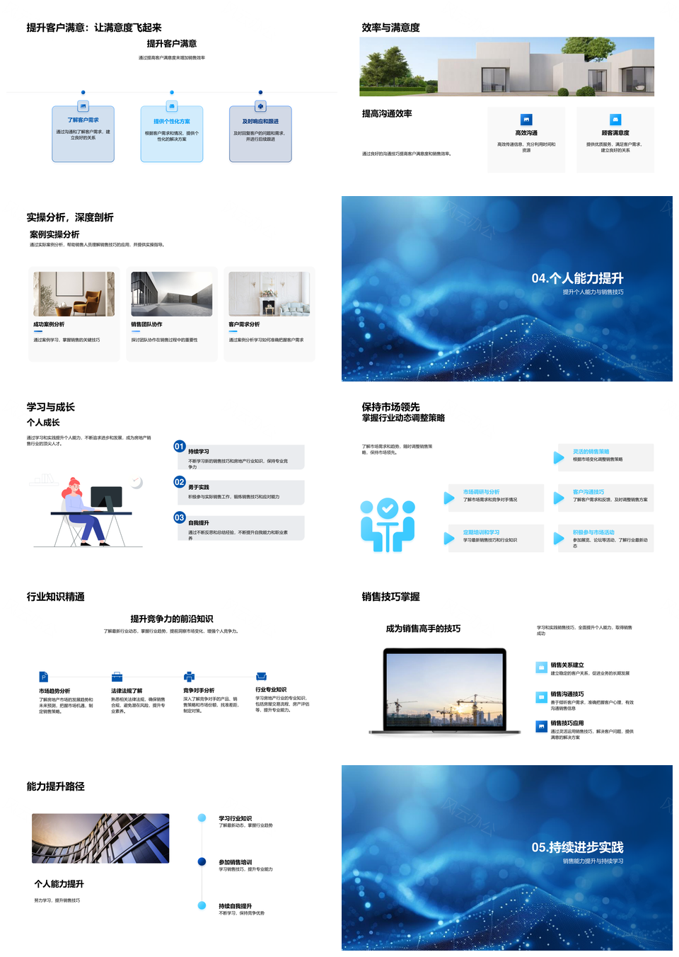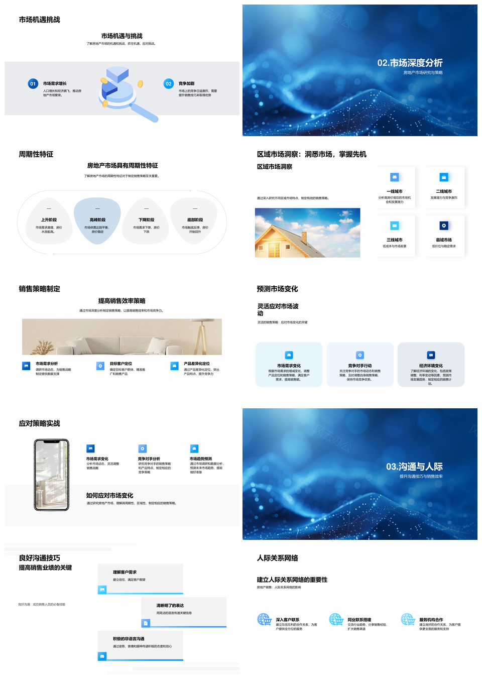 这是一张房地产销售策略培训市场变化客户沟通技巧PPT模板,包含房地产、销售策略、培训、市场、变化、客户、沟通、技巧等主题内容,也可用作房地产销售策略培训、房地产销售市场变化、市场变化客户沟通技巧、客户沟通技巧培训、销售策略培训市场、策略培训市场变化、市场变化客户沟通、房地产销售策略、销售策略培训、市场变化客户、策略培训市场、培训市场变化、房地产销售、销售策略、市场变化等PPT场景使用。 风云办公提供的房地产销售策略培训市场变化客户沟通技巧PPT模板,下载格式为pptx,一共33页,作品中文字及图均可以修改和编辑,图片更改请在作品中右键图片并更换,文字修改请直接点击文字进行修改。