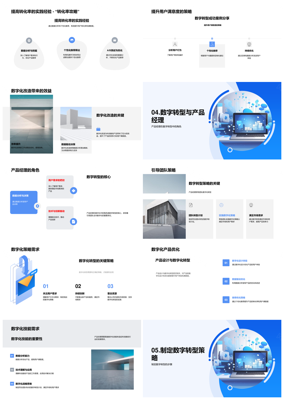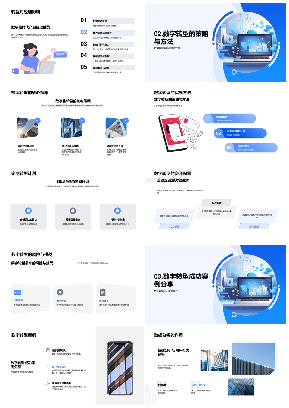 科技数码产品经理数字转型策略实施案例解析PPT模板推荐