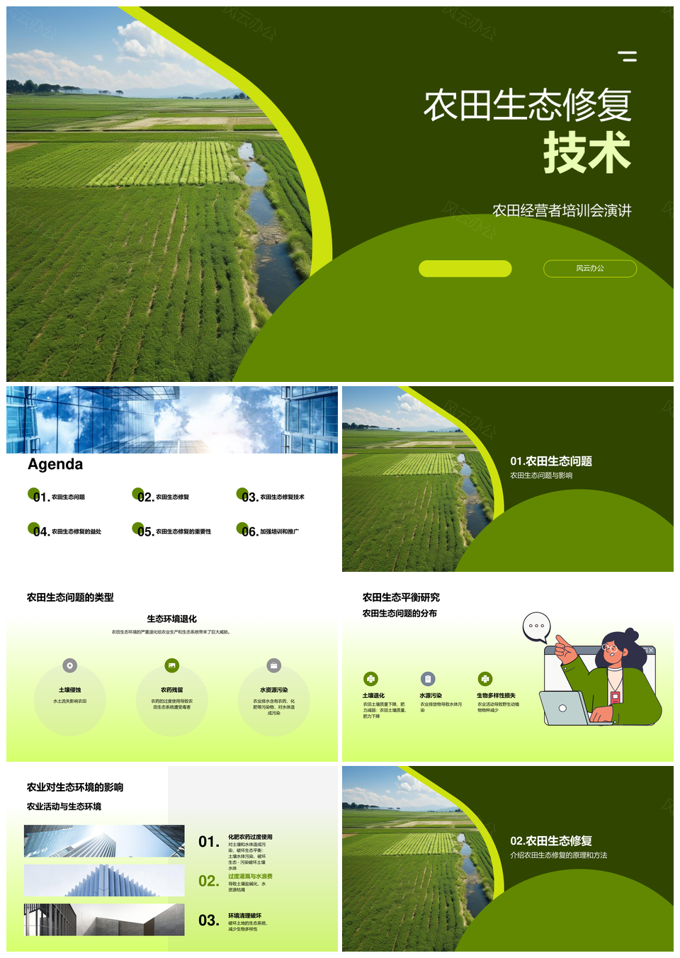风云办公提供的农田生态退化修复技术与农业活动调控PPT模板,下载格式为pptx,一共24页,作品中文字及图均可以修改和编辑,图片更改请在作品中右键图片并更换,文字修改请直接点击文字进行修改。