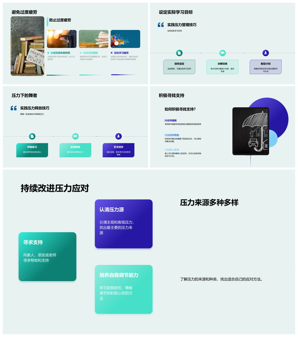 学习压力管理应对高期望重负时间运动放松PPT模板推荐
