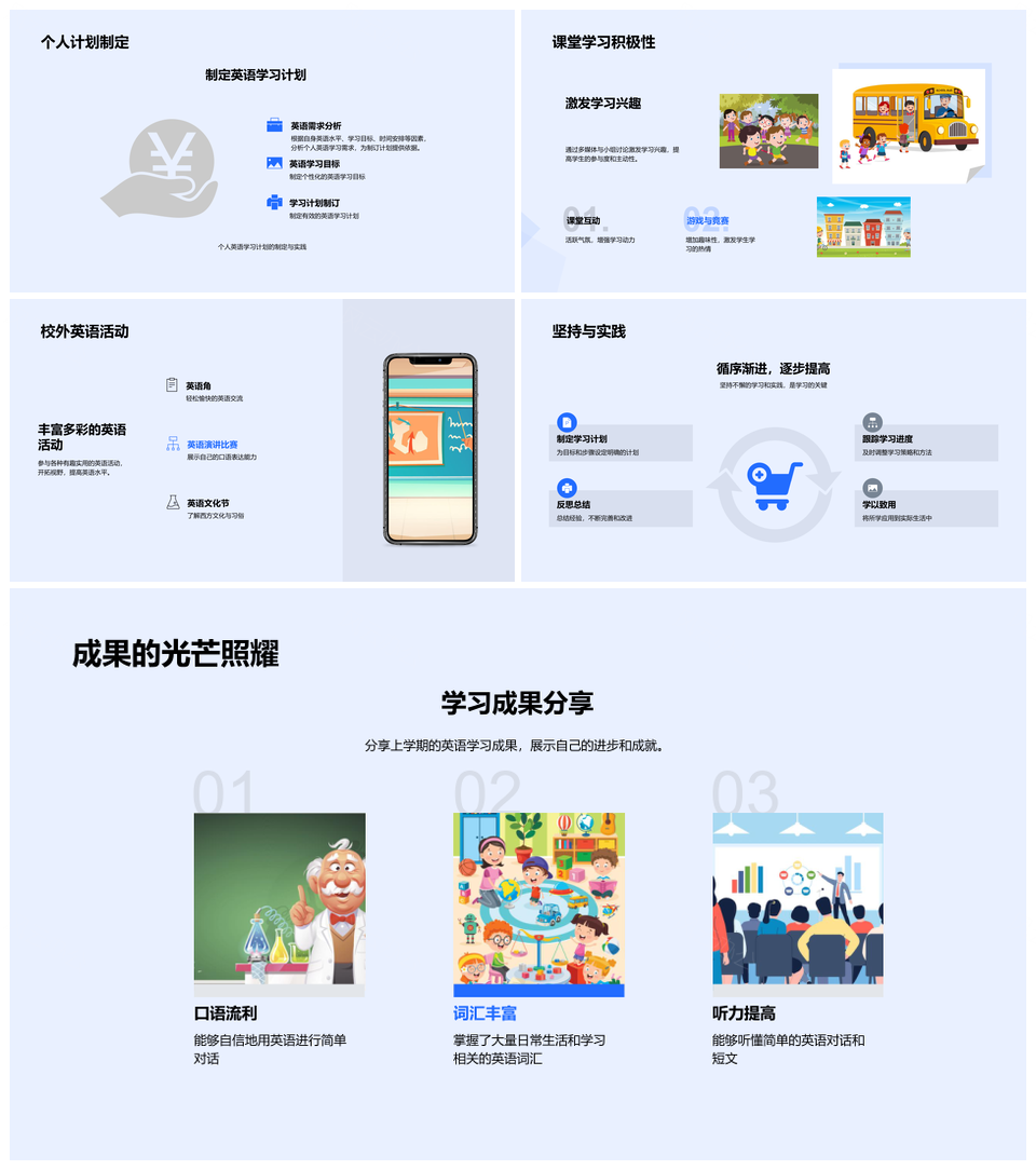 小学英语学期目标语法词汇听力互动多媒体教学PPT模板推荐