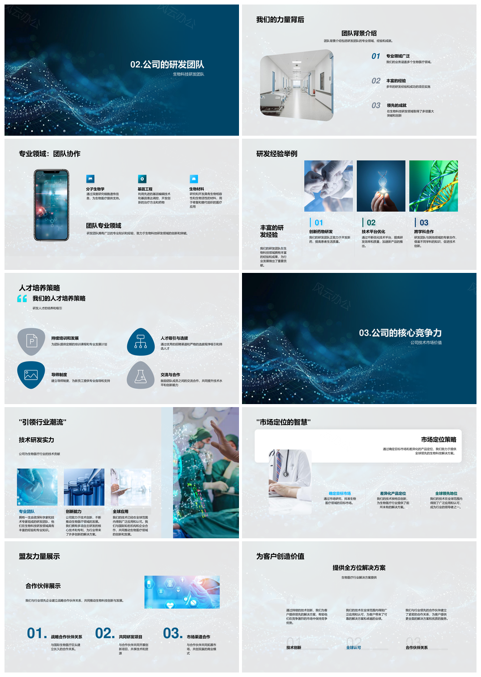 风云办公提供的生物医疗技术研发成果团队合作定位PPT模板,下载格式为pptx,一共28页,作品中文字及图均可以修改和编辑,图片更改请在作品中右键图片并更换,文字修改请直接点击文字进行修改。