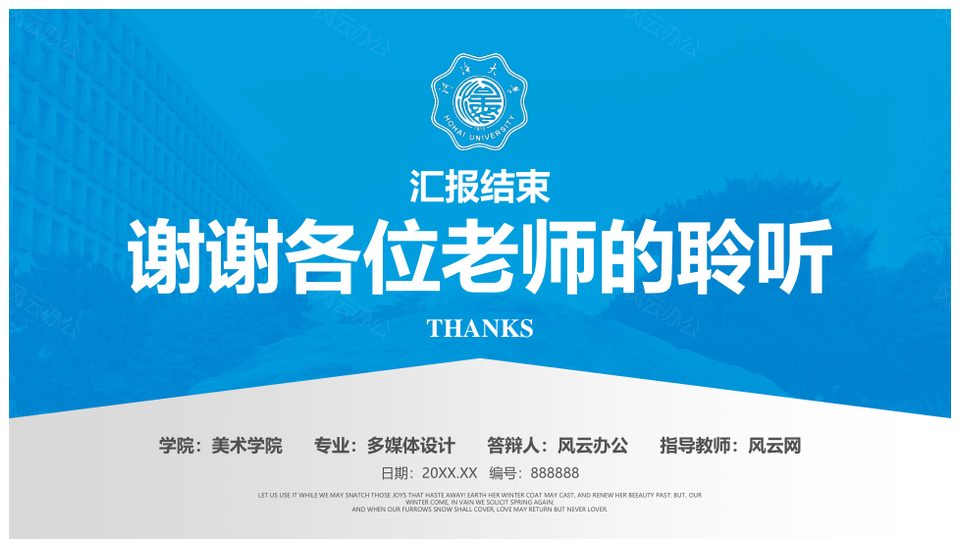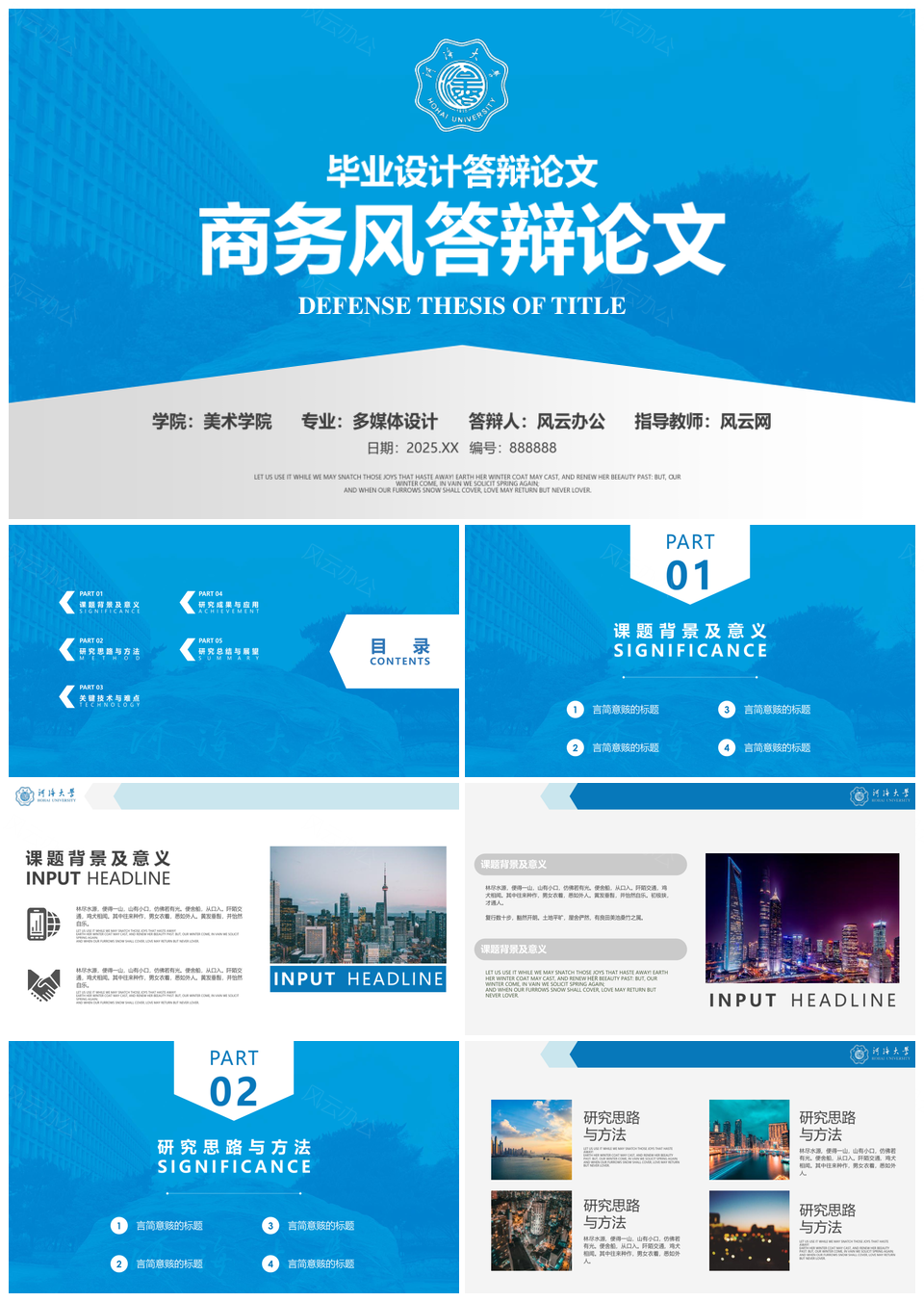 这是一张2025蓝色毕业答辩河海大学论文PPT模板,包含蓝色、毕业答辩、河海大学、论文等主题内容,也可用作河海大学毕业答辩论文、毕业答辩河海大学论文、河海大学论文、毕业论文、毕业答辩、答辩论文等PPT场景使用。 风云办公提供的2025蓝色毕业答辩河海大学论文PPT模板,下载格式为pptx,一共18页,作品中文字及图均可以修改和编辑,图片更改请在作品中右键图片并更换,文字修改请直接点击文字进行修改。