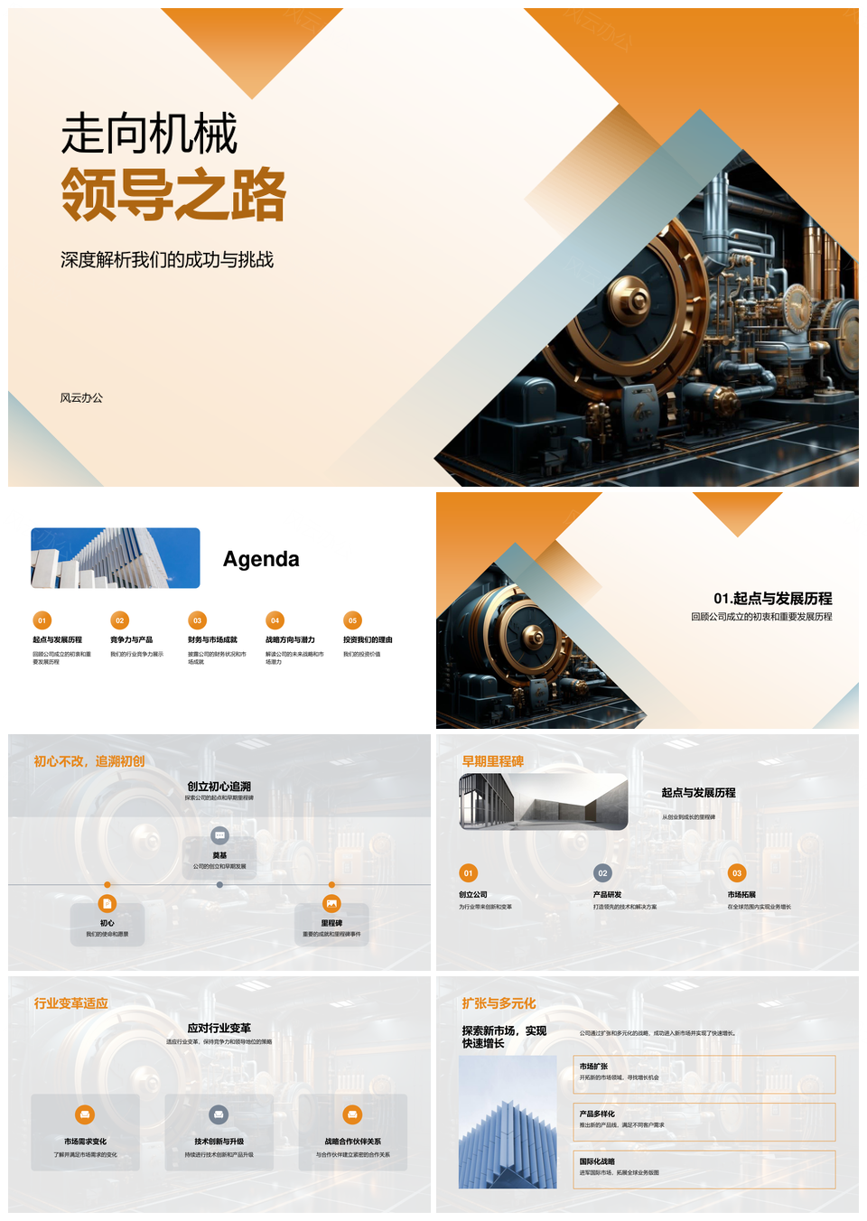 机械领导战略引领行业成功挑战市场地位PPT模板推荐