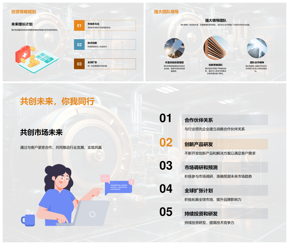 这是一张机械领导战略引领行业成功挑战市场地位PPT模板,包含机械、领导、战略、引领、行业、成功、挑战、市场、地位等主题内容,也可用作机械领导战略引领、领导战略引领行业、战略引领行业成功、引领行业成功挑战、行业成功挑战市场、成功挑战市场地位、机械领导战略、领导战略引领、战略引领行业、引领行业成功、行业成功挑战、成功挑战市场、挑战市场地位、成功挑战市场、市场地位等PPT场景使用。 风云办公提供的机械领导战略引领行业成功挑战市场地位PPT模板,下载格式为pptx,一共31页,作品中文字及图均可以修改和编辑,图片更改请在作品中右键图片并更换,文字修改请直接点击文字进行修改。