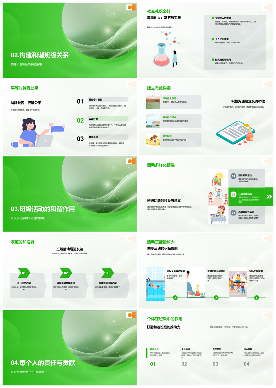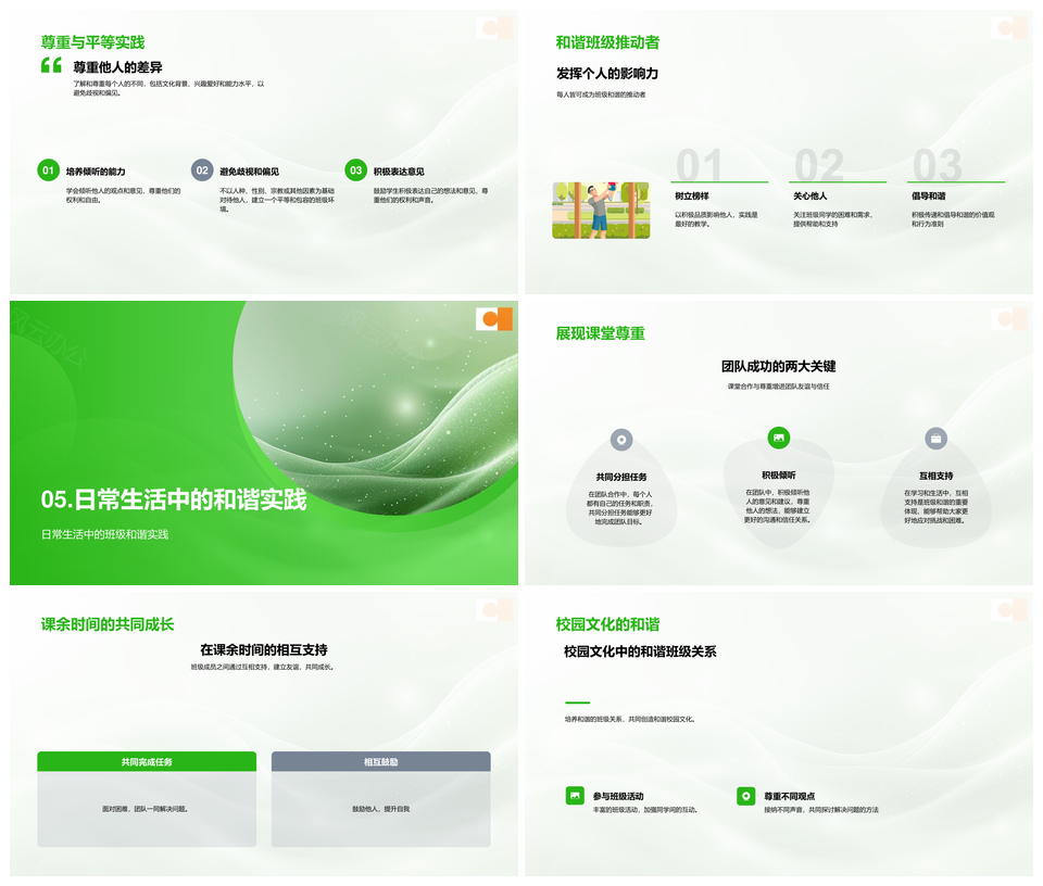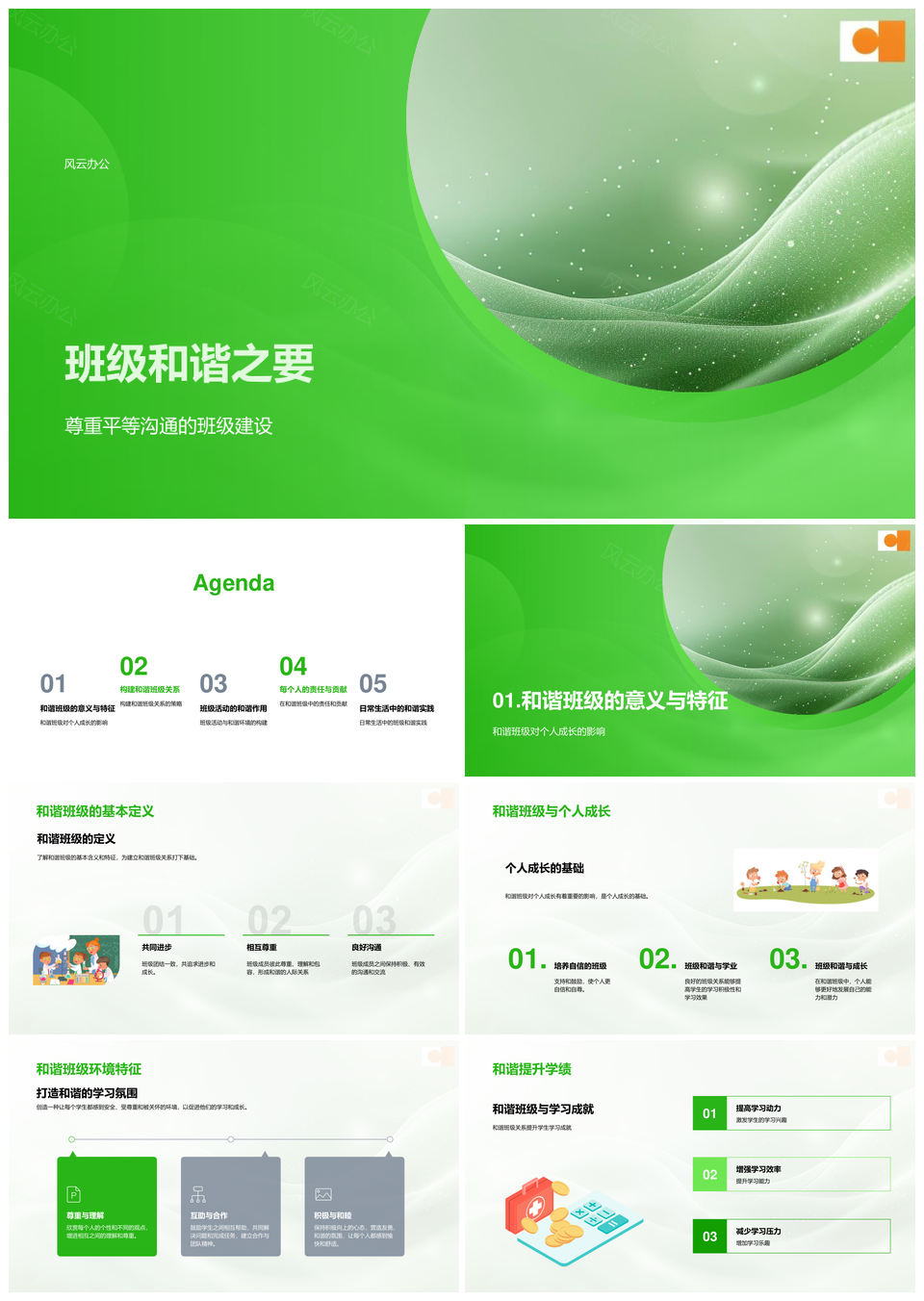 风云办公提供的和谐班级共建尊重平等促成长成就PPT模板,下载格式为pptx,一共24页,作品中文字及图均可以修改和编辑,图片更改请在作品中右键图片并更换,文字修改请直接点击文字进行修改。