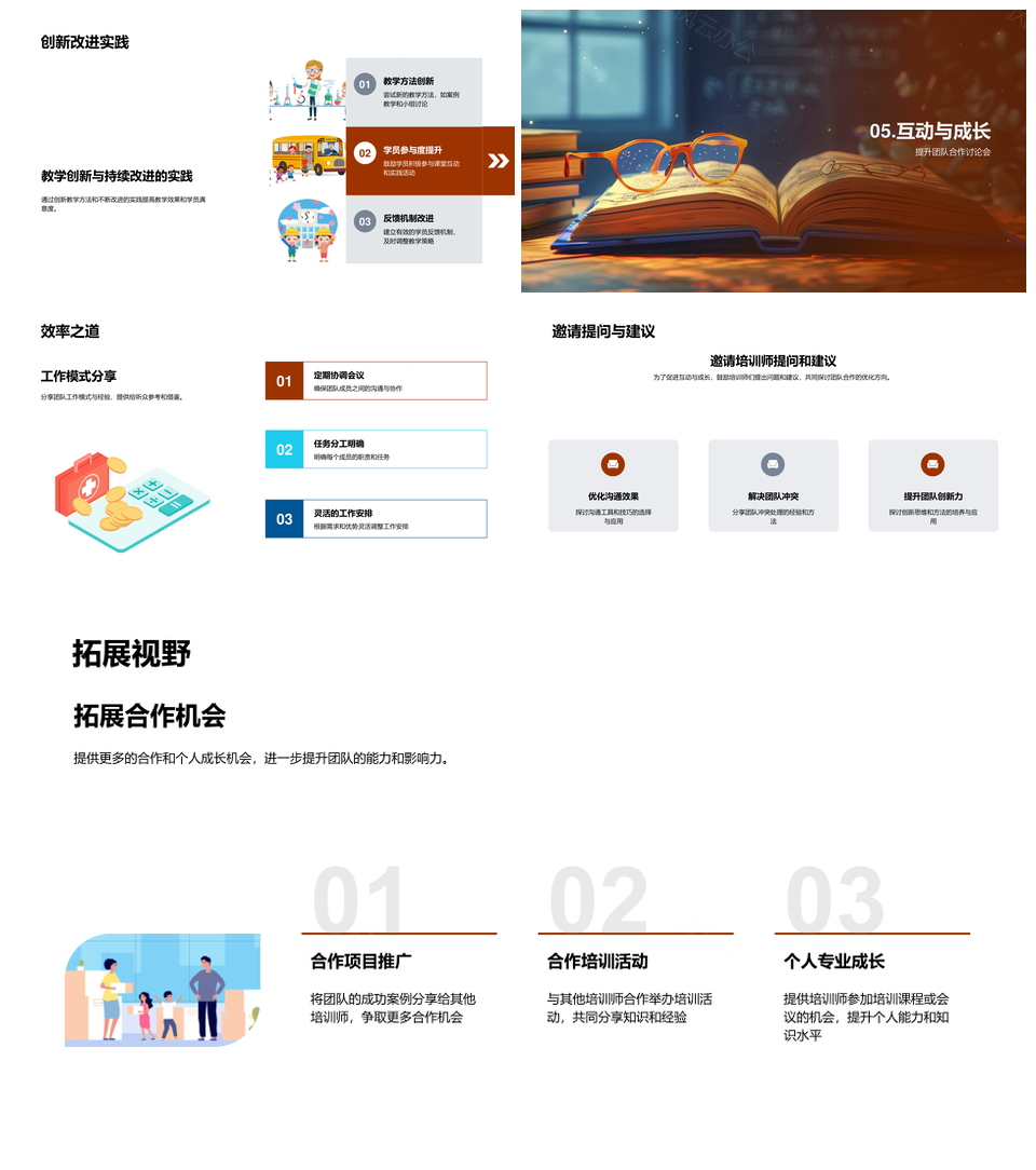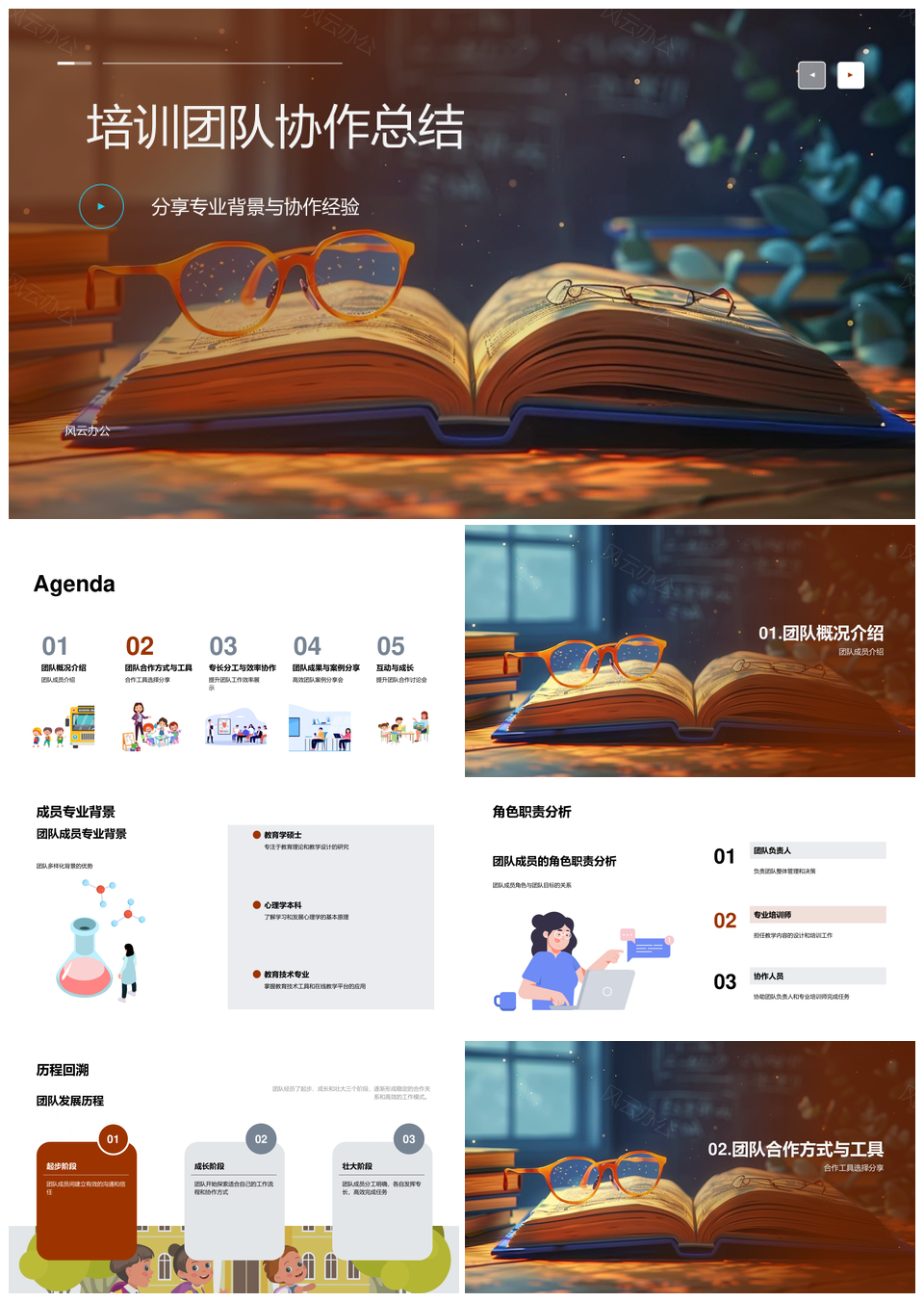 风云办公提供的培训团队协作工具分工策略效率总结PPT模板,下载格式为pptx,一共23页,作品中文字及图均可以修改和编辑,图片更改请在作品中右键图片并更换,文字修改请直接点击文字进行修改。