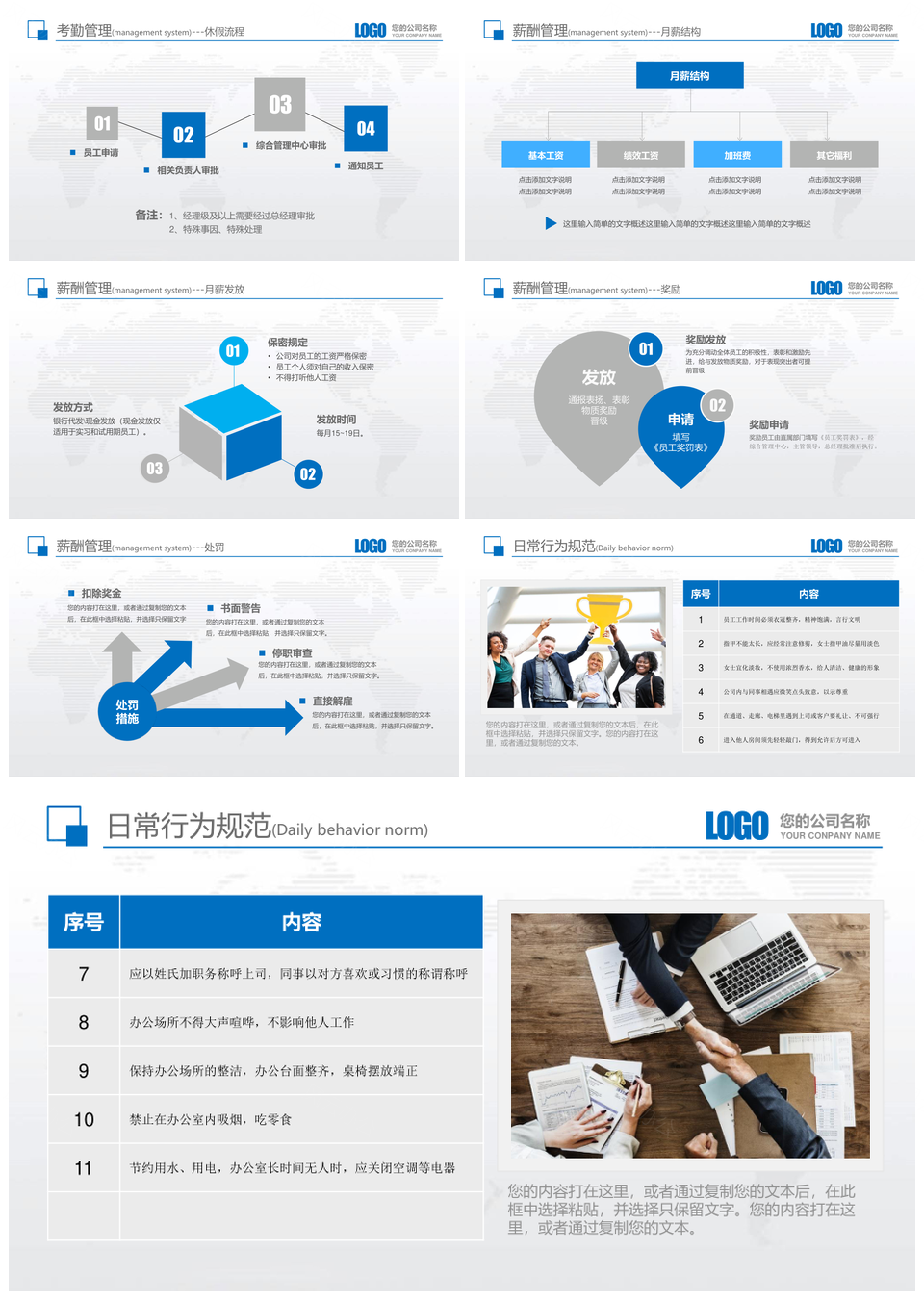 蓝色人力资源公司单位新员工入职培训手册PPT高端模板