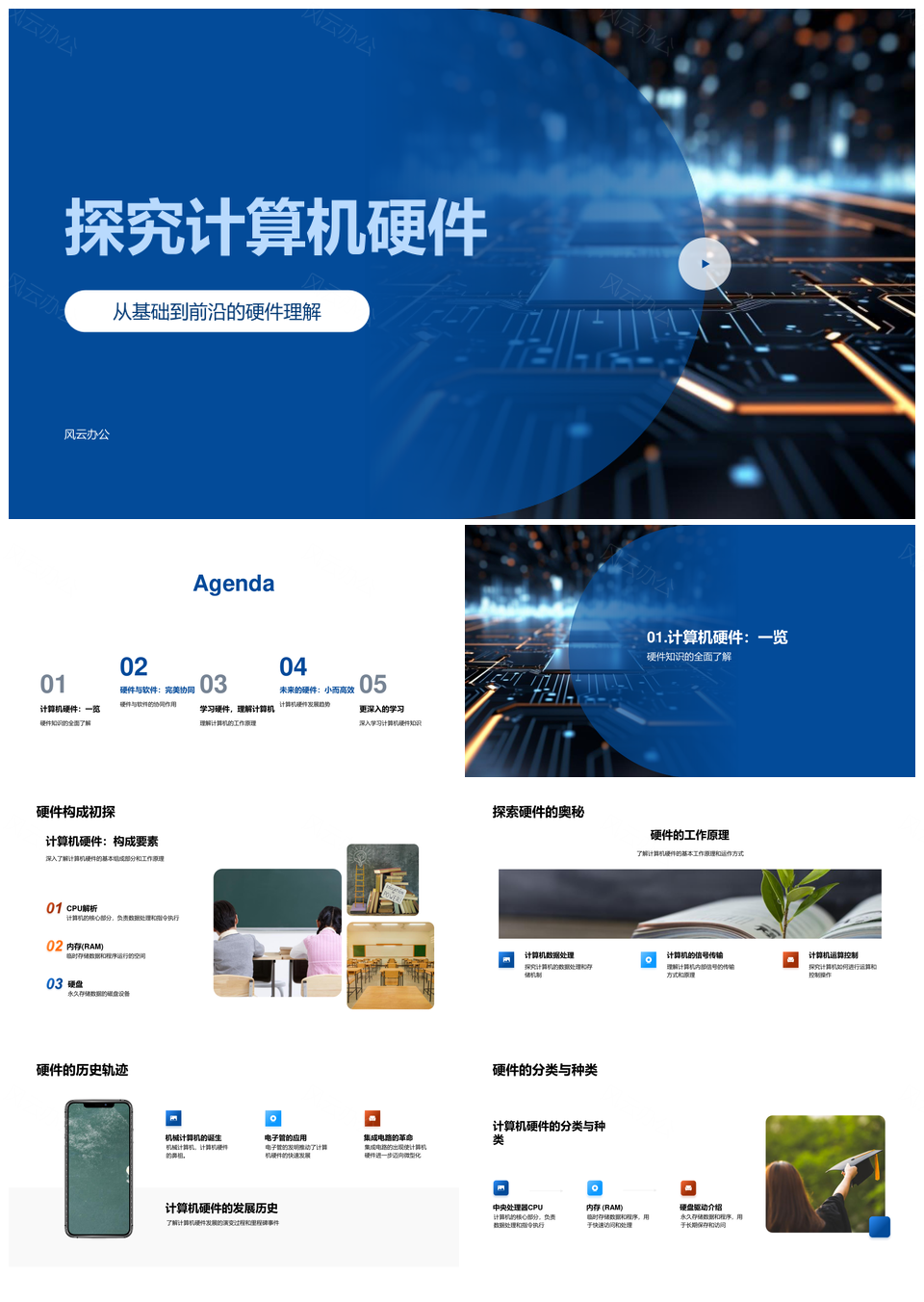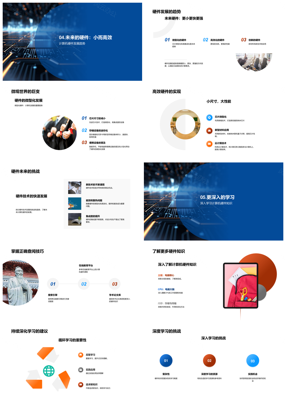 风云办公提供的计算机硬件发展趋势与高效微型化学习PPT模板,下载格式为pptx,一共28页,作品中文字及图均可以修改和编辑,图片更改请在作品中右键图片并更换,文字修改请直接点击文字进行修改。