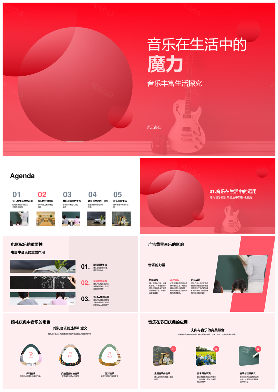 风云办公提供的音乐魔力影广婚庆疗愈教情符缓压PPT模板,下载格式为pptx,一共33页,作品中文字及图均可以修改和编辑,图片更改请在作品中右键图片并更换,文字修改请直接点击文字进行修改。