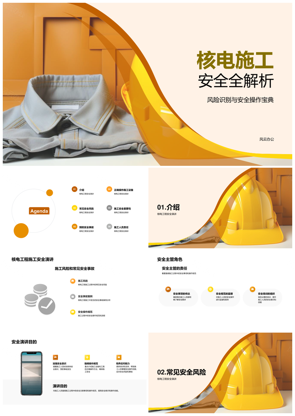 风云办公提供的核电施工危险源安全操作与风险管控PPT模板,下载格式为pptx,一共27页,作品中文字及图均可以修改和编辑,图片更改请在作品中右键图片并更换,文字修改请直接点击文字进行修改。