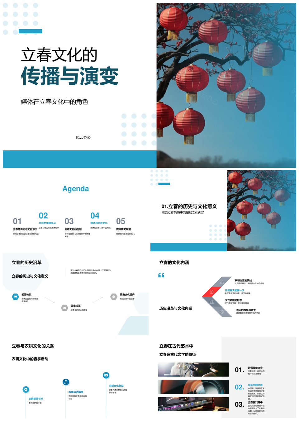 2025立春文化媒体传播演变与农耕灯笼传承PPT模板推荐