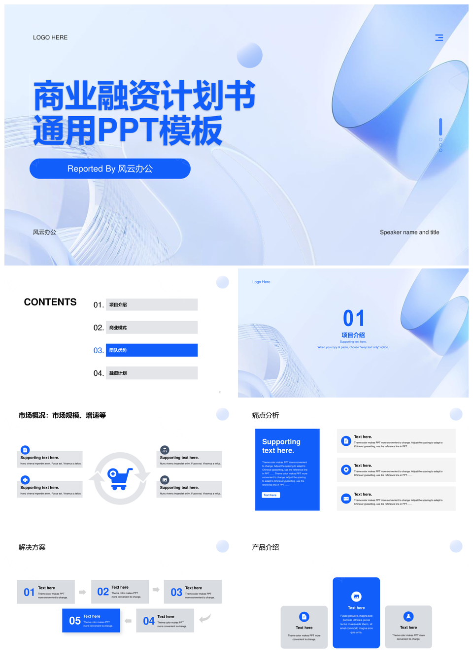 风云办公提供的蓝色科技互联网经济金融商业计划书PPT模板,下载格式为pptx,一共21页,作品中文字及图均可以修改和编辑,图片更改请在作品中右键图片并更换,文字修改请直接点击文字进行修改。