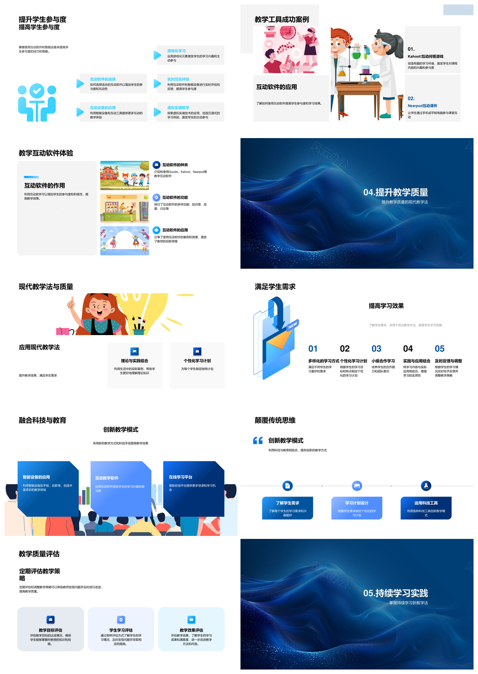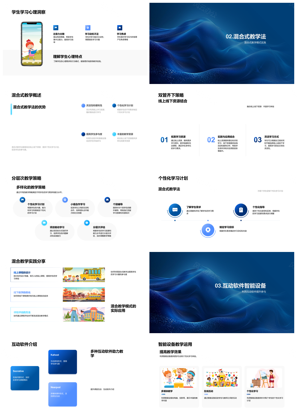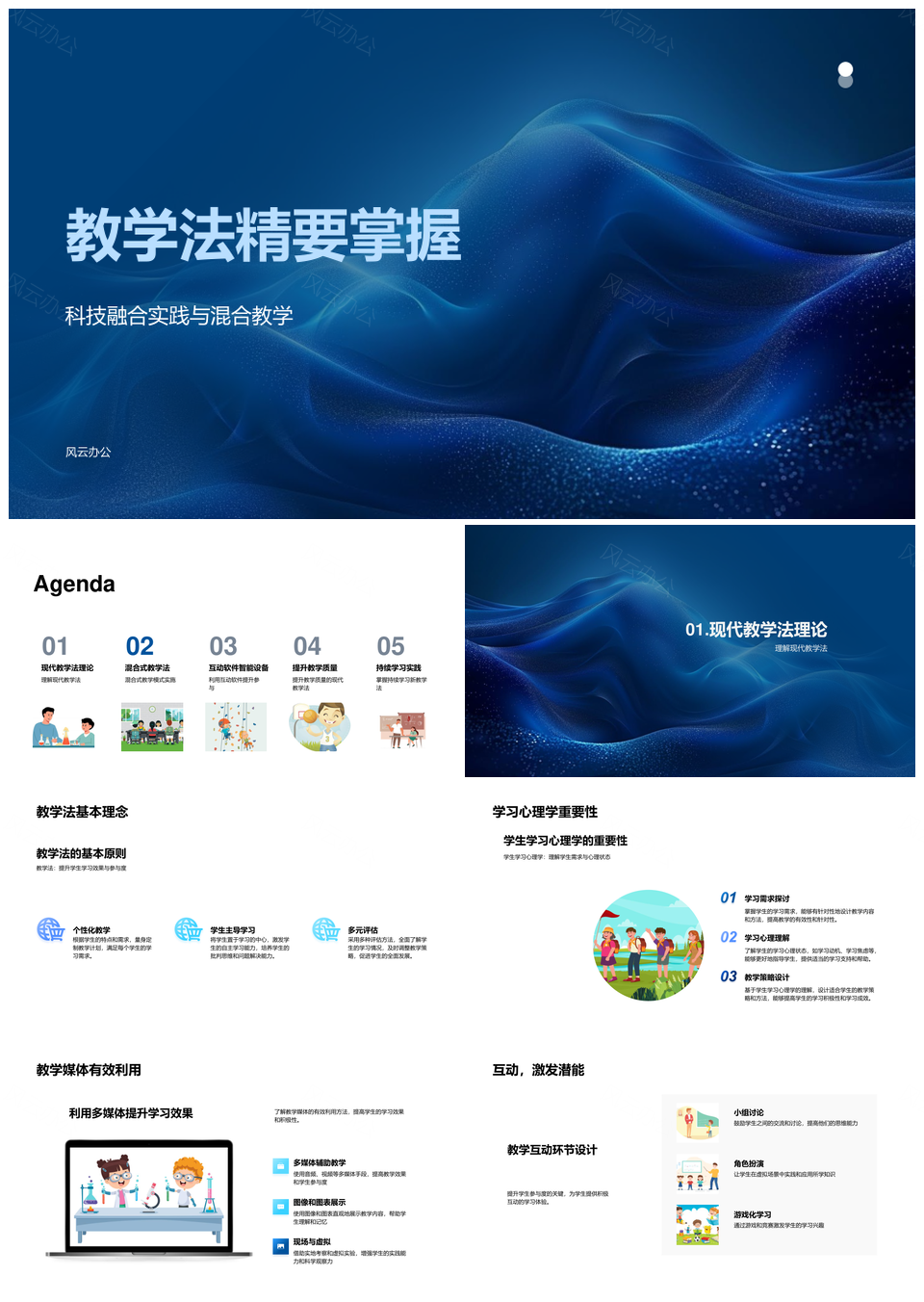 风云办公提供的科技融合混合教学法个性化互动设计PPT模板,下载格式为pptx,一共33页,作品中文字及图均可以修改和编辑,图片更改请在作品中右键图片并更换,文字修改请直接点击文字进行修改。