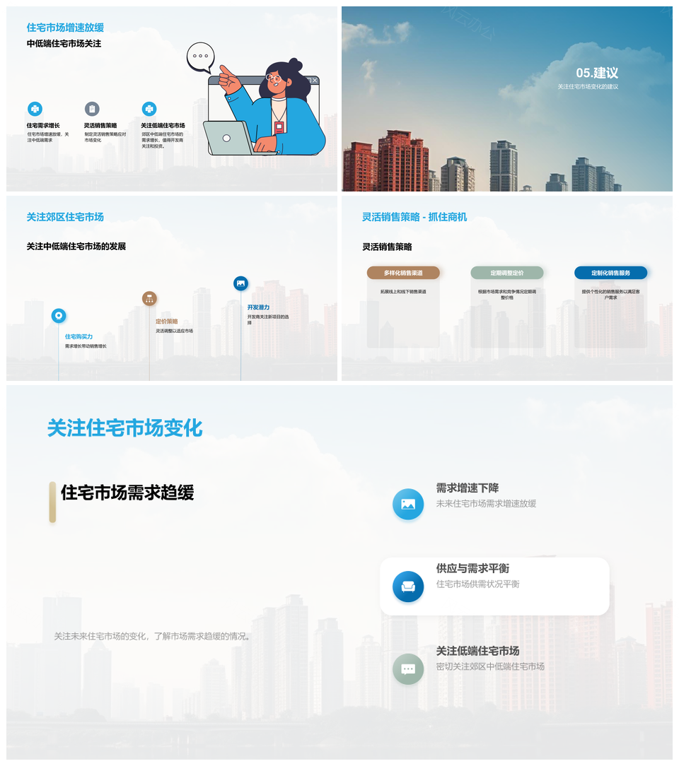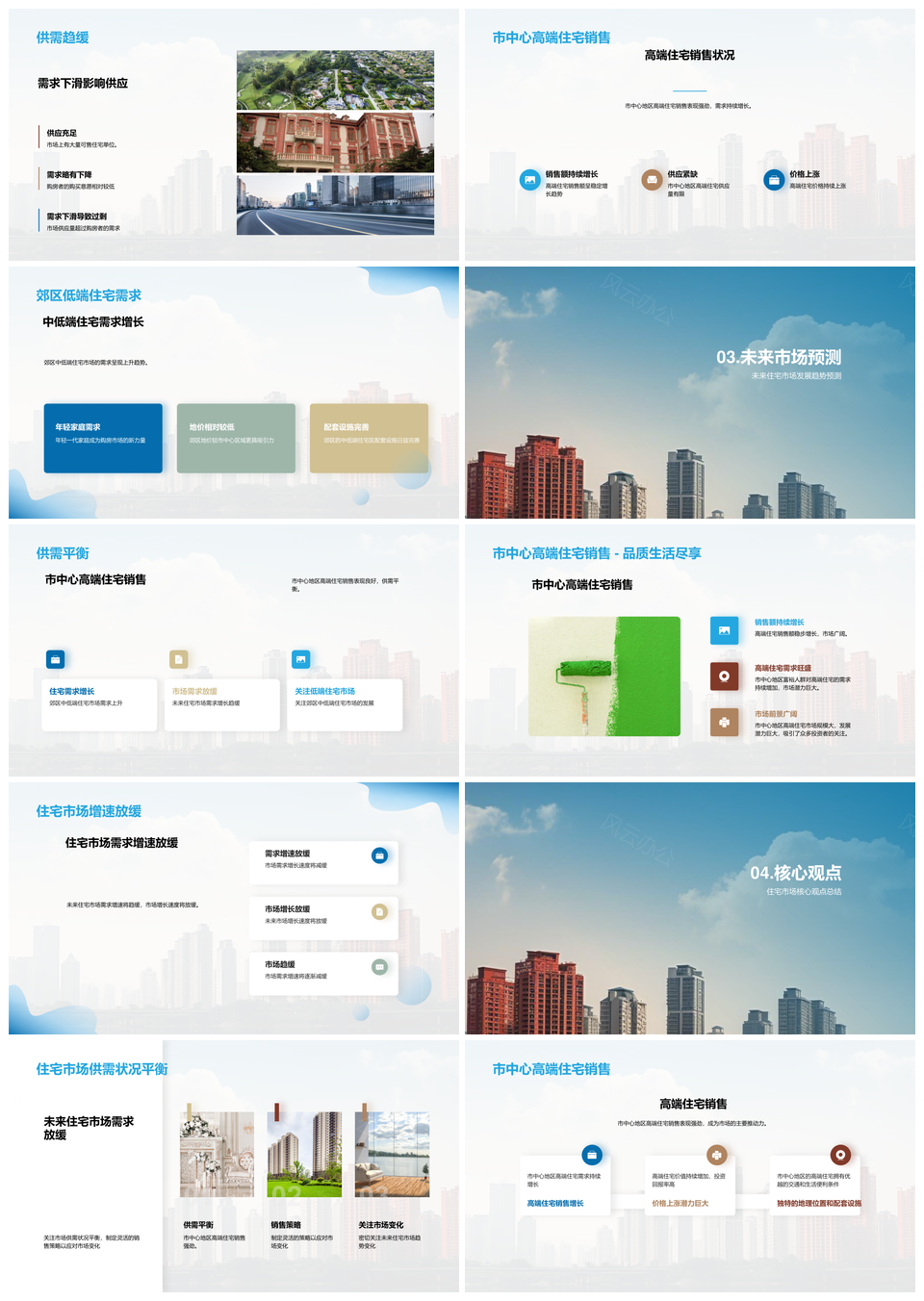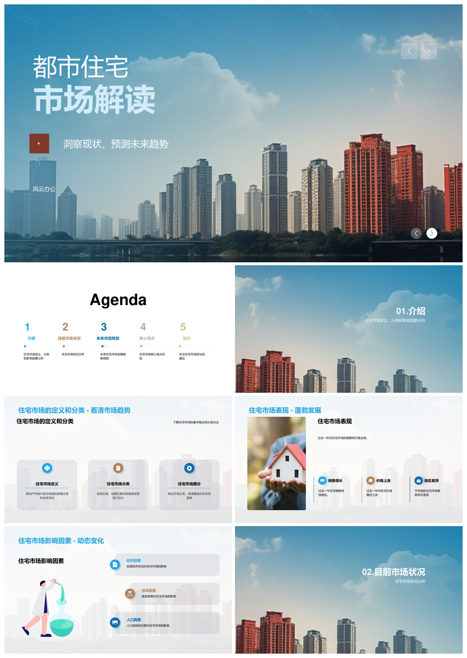 风云办公提供的城市住宅市场现状与未来趋势解析PPT模板,下载格式为pptx,一共23页,作品中文字及图均可以修改和编辑,图片更改请在作品中右键图片并更换,文字修改请直接点击文字进行修改。