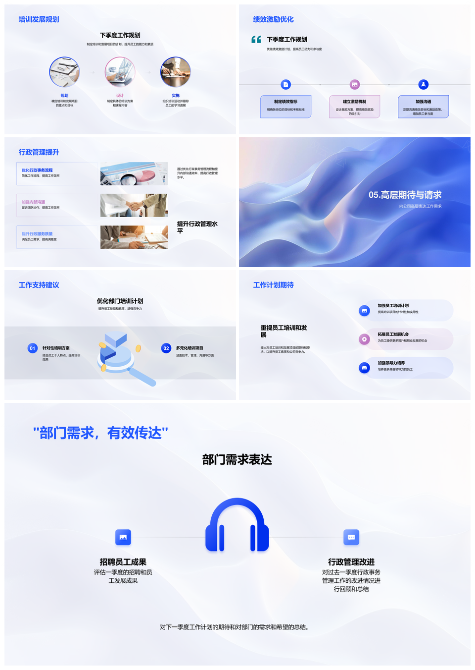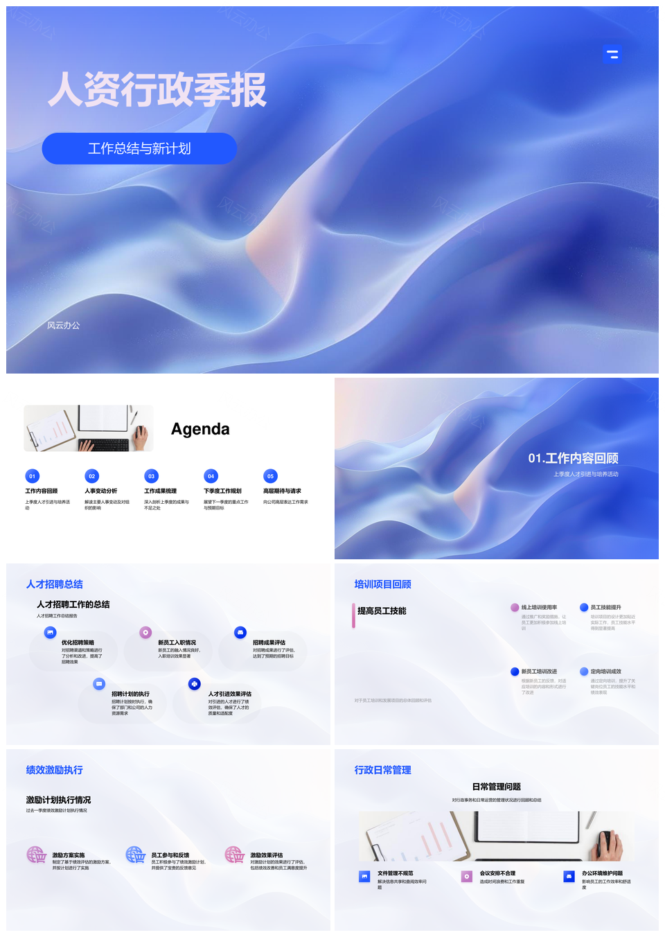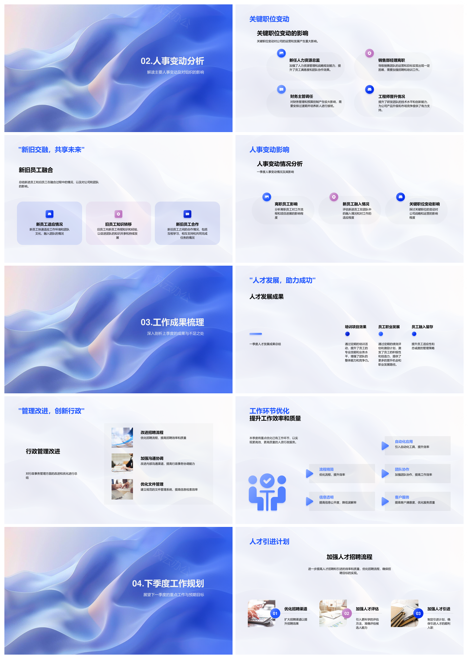 人资行政季报总结计划人才培训绩效激励职位变动PPT模板