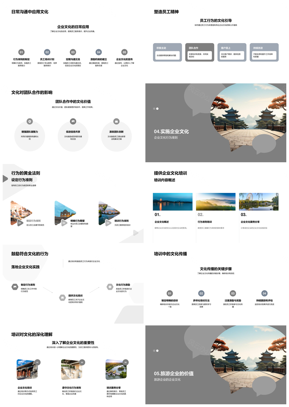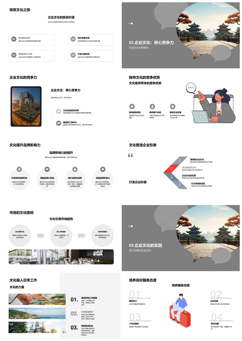 风云办公提供的旅游企业文化构建提升品牌核心竞争力PPT模板,下载格式为pptx,一共33页,作品中文字及图均可以修改和编辑,图片更改请在作品中右键图片并更换,文字修改请直接点击文字进行修改。