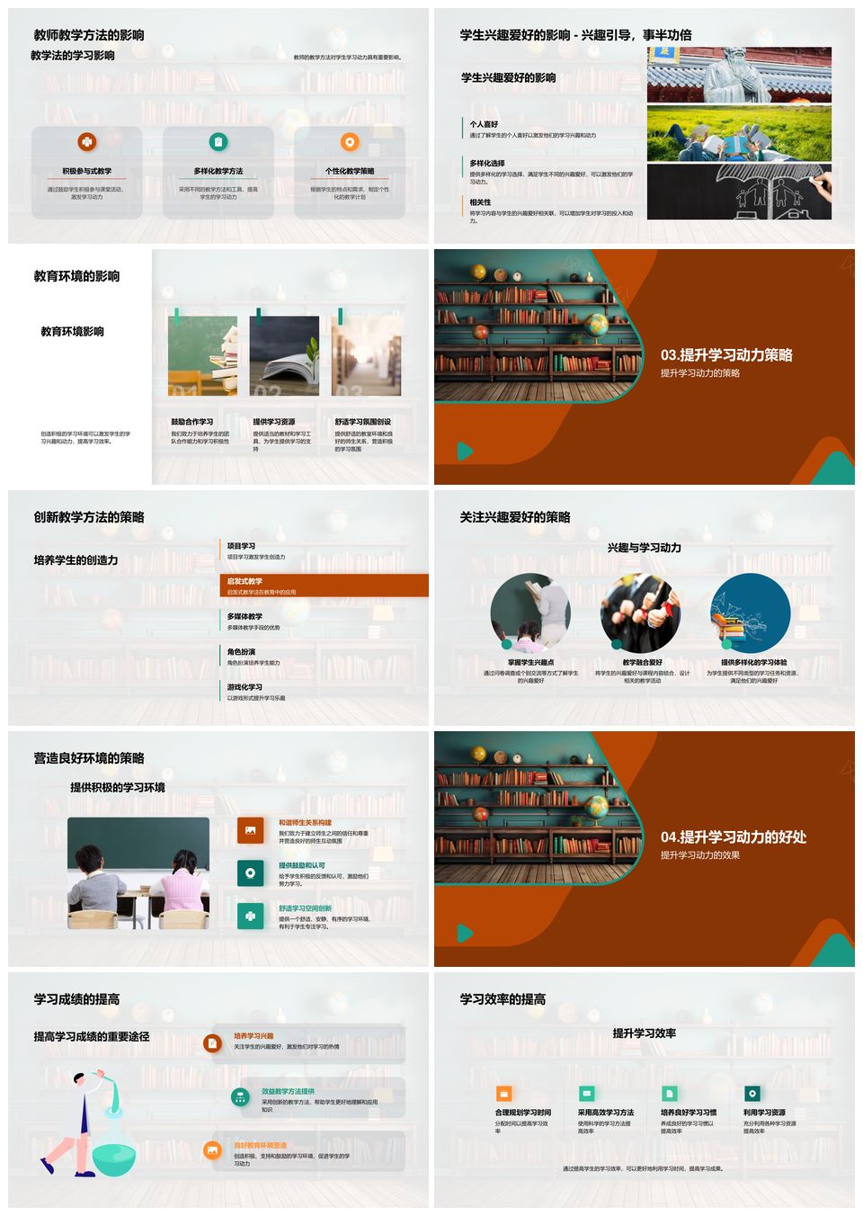 风云办公提供的教育专家教学法激发学生学习动力PPT模板,下载格式为pptx,一共23页,作品中文字及图均可以修改和编辑,图片更改请在作品中右键图片并更换,文字修改请直接点击文字进行修改。