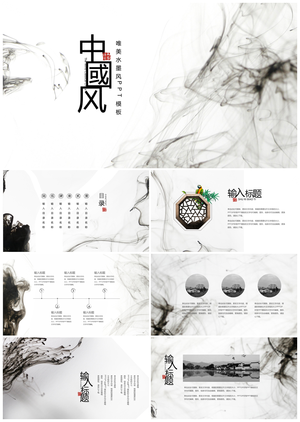 这是一张黑色中国风水墨PPT模板,包含中国风、水墨等主题内容,也可用作黑色中国风水墨、黑色中国风、中国风水墨、黑色水墨等PPT场景使用。 风云办公提供的黑色中国风水墨PPT模板,下载格式为pptx,一共10页,作品中文字及图均可以修改和编辑,图片更改请在作品中右键图片并更换,文字修改请直接点击文字进行修改。