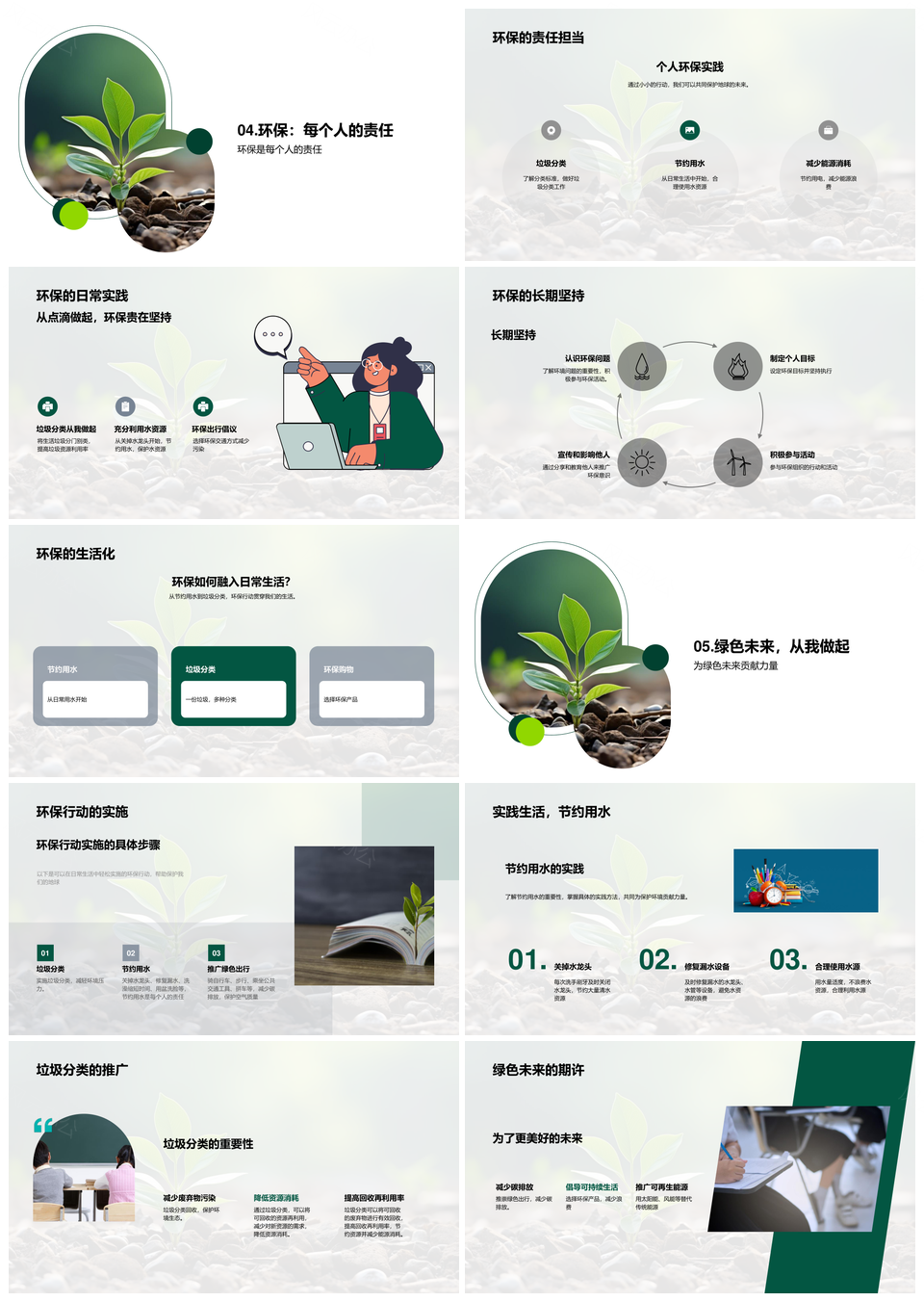 这是一张环保责任共担垃圾分类节水回收共建环境改善PPT模板,包含环保责任、共担、垃圾分类、节水、回收、共建、环境改善等主题内容,也可用作环保责任共担垃圾分类、责任共担垃圾分类节水、共担垃圾分类节水回收、垃圾分类节水回收共建、节水回收共建环境改善、环保责任共担分类、责任共担垃圾分类、共担节水回收共建、环保责任节水回收、环保共担回收共建、垃圾分类共建环境、责任分类回收环境、共担节水环境改善、节水共建环境改善、分类回收环境改善等PPT场景使用。 风云办公提供的环保责任共担垃圾分类节水回收共建环境改善PPT模板,下载格式为pptx,一共28页,作品中文字及图均可以修改和编辑,图片更改请在作品中右键图片并更换,文字修改请直接点击文字进行修改。