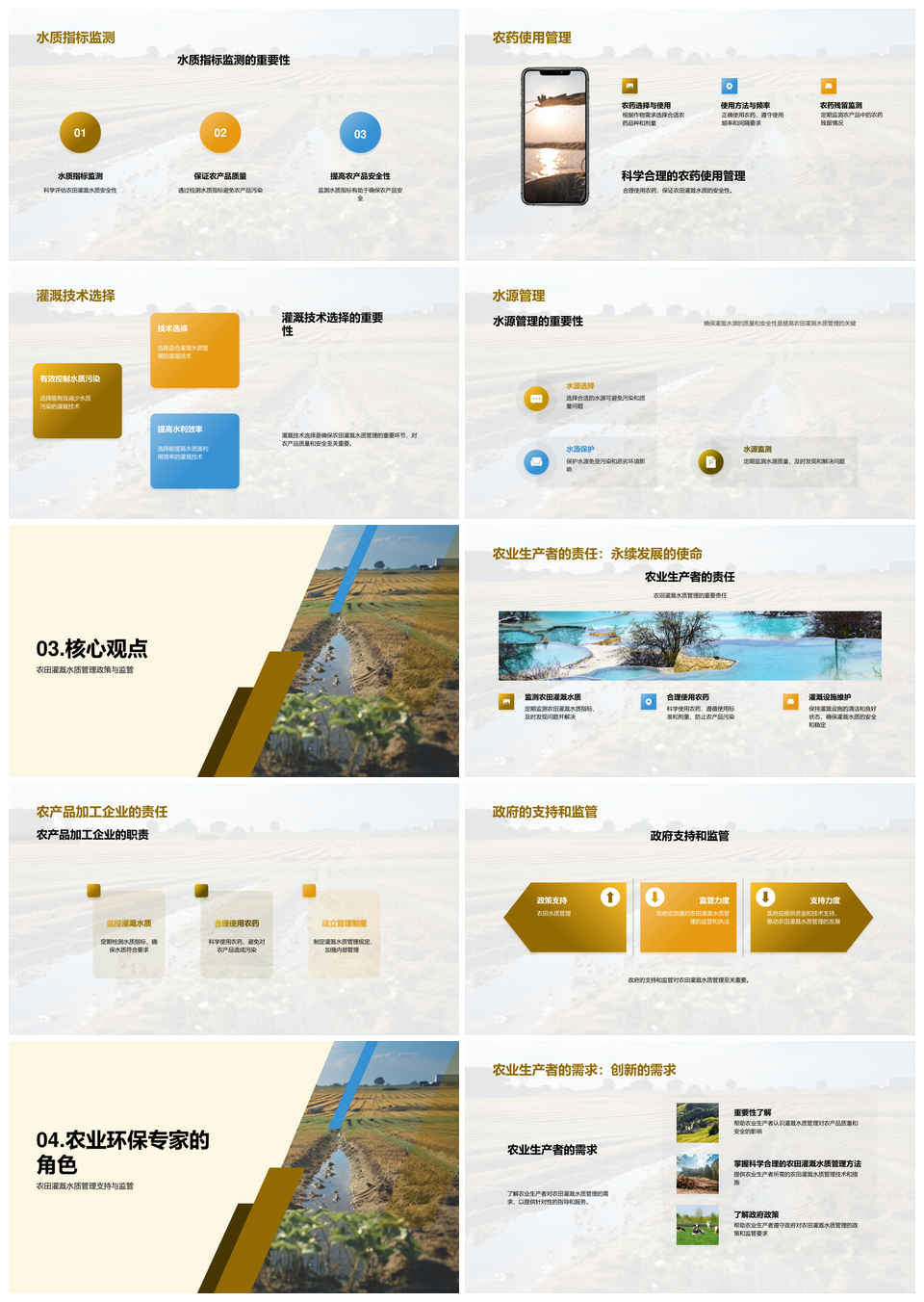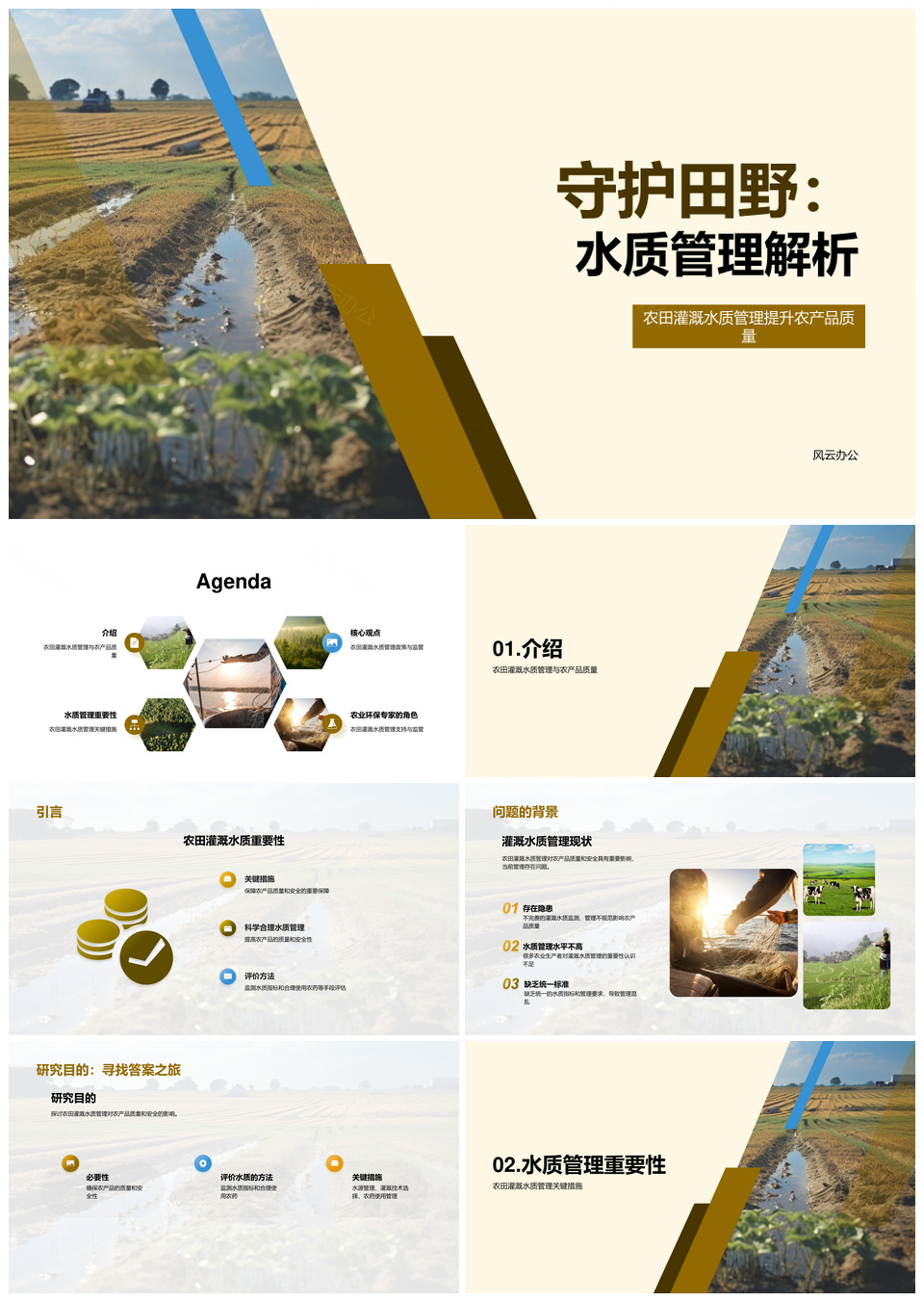 风云办公提供的保障农田灌溉水质安全农产品生产PPT模板,下载格式为pptx,一共20页,作品中文字及图均可以修改和编辑,图片更改请在作品中右键图片并更换,文字修改请直接点击文字进行修改。