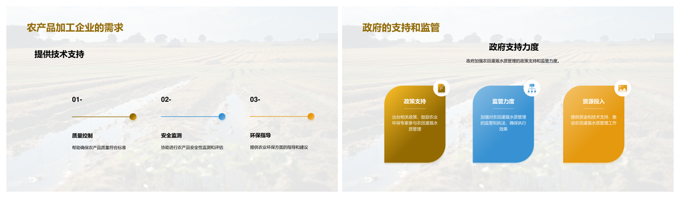 这是一张保障农田灌溉水质安全农产品生产PPT模板,包含农田、灌溉、水质、安全、农产品、生产等主题内容,也可用作保障农田灌溉水质安全、保障农田灌溉水质、农田灌溉水质安全农产品、灌溉水质安全农产品生产、农田灌溉水质安全、灌溉水质安全农产品、保障农田灌溉、农田灌溉水质、灌溉水质安全、水质安全农产品生产、安全农产品生产、保障农田、农田灌溉、灌溉水质、水质安全、安全农产品、农产品生产等PPT场景使用。