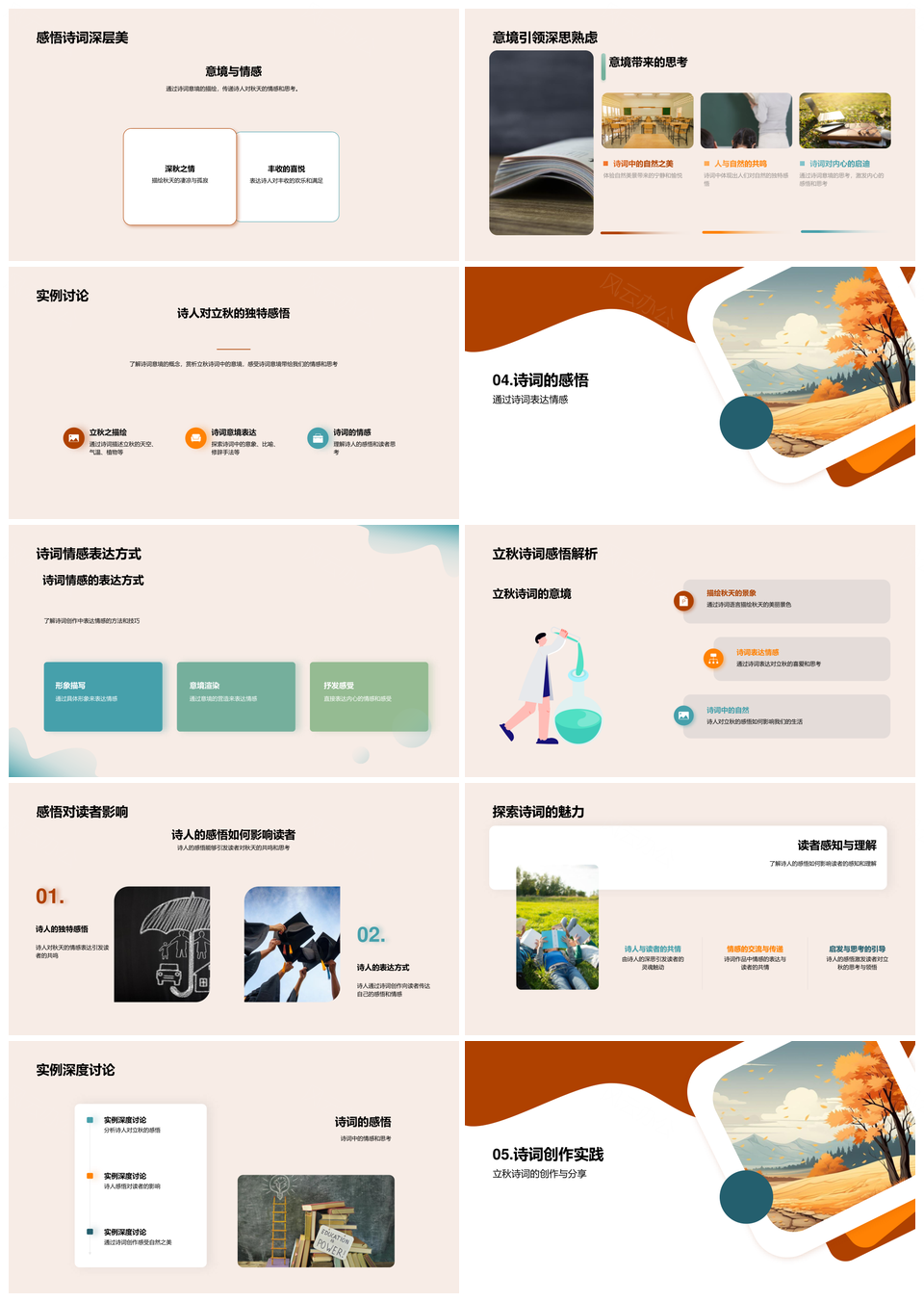 这是一张立秋诗词韵律秋叶意境创作PPT模板,包含立秋、诗词、韵律、秋叶、意境、创作等主题内容,也可用作立秋诗词韵律秋叶、诗词韵律秋叶意境、韵律秋叶意境创作、立秋秋叶意境创作、立秋诗词韵律创作、立秋诗词意境创作、诗词韵律意境创作、立秋韵律秋叶意境、秋叶意境创作诗词、诗词秋叶韵律创作、韵律秋叶诗词创作、立秋诗词秋叶韵律、诗词韵律秋叶创作、立秋韵律意境创作、立秋诗词秋叶意境等PPT场景使用。