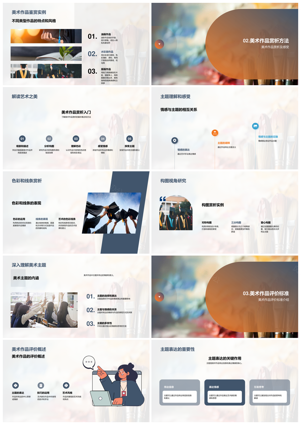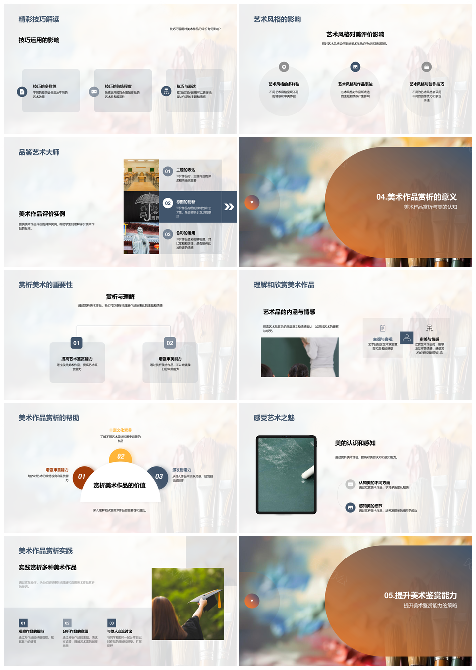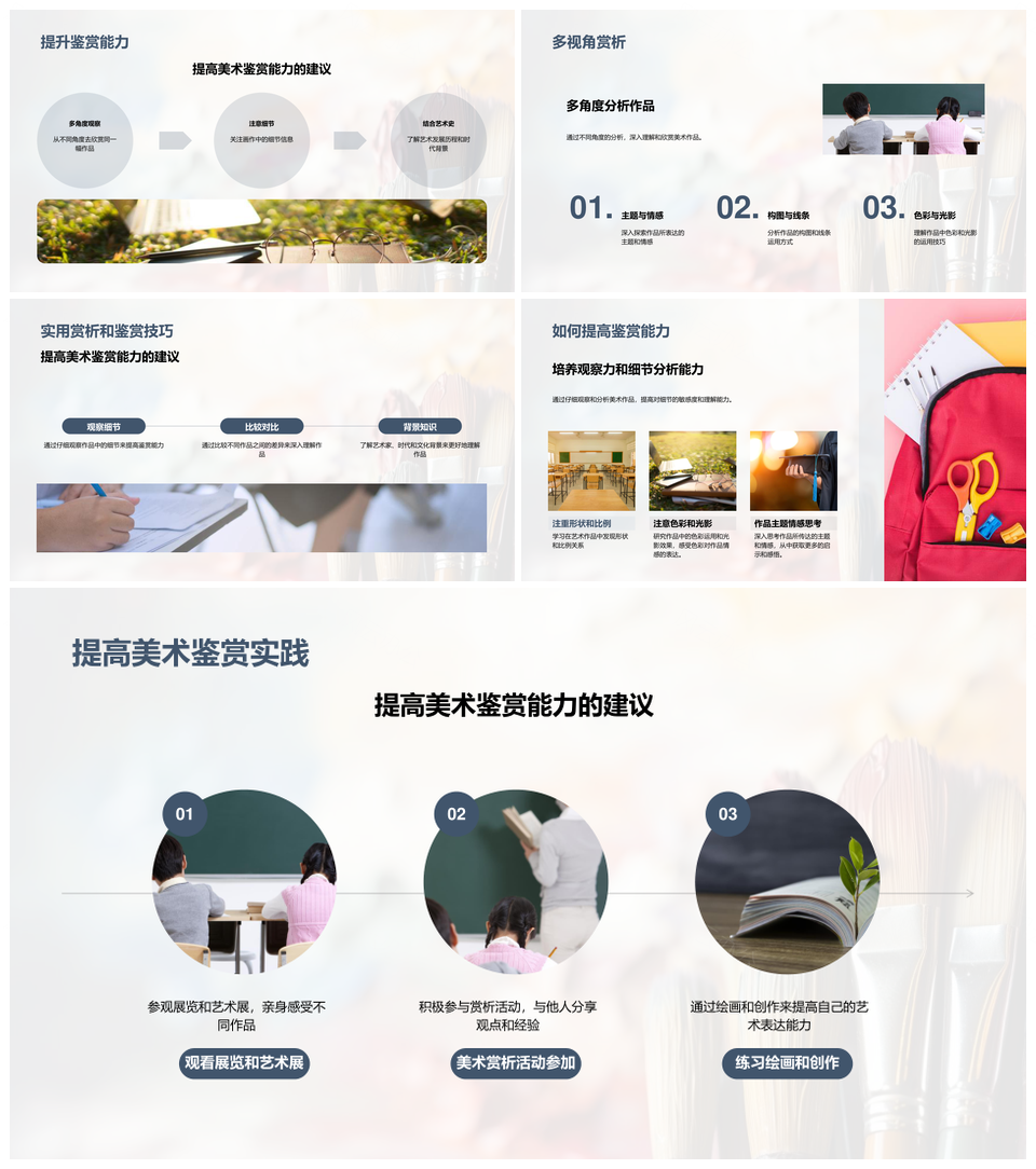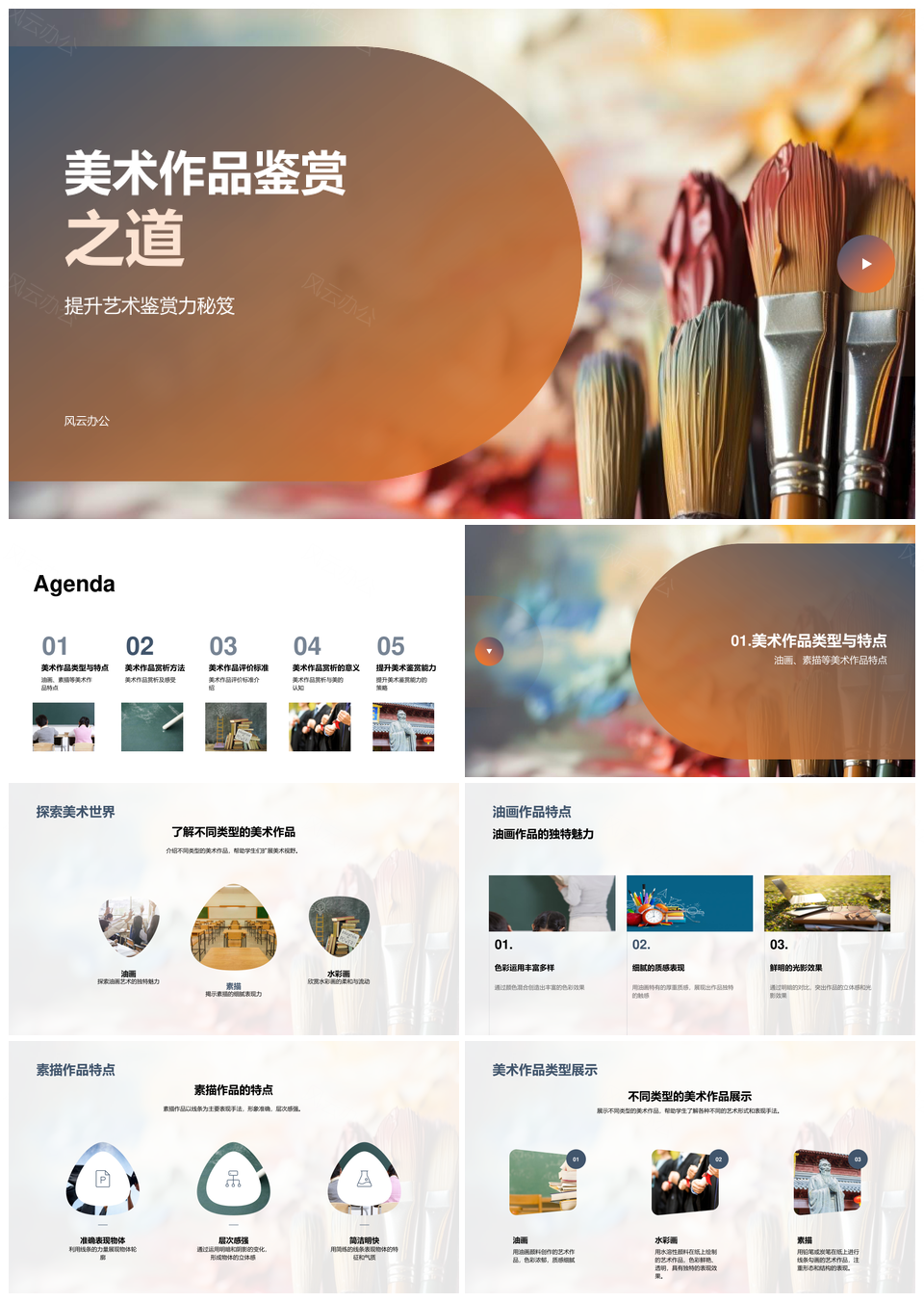 这是一张美术鉴赏提升技法解析油画素描色彩线条PPT模板,包含美术鉴赏、提升、技法、解析、油画、素描、色彩、线条等主题内容,也可用作美术鉴赏技法解析油画、油画素描色彩线条、美术技法解析油画、解析油画素描色彩、提升技法色彩线条、美术素描色彩线条、美术鉴赏技法提升、技法解析油画素描、素描色彩线条提升、油画技法色彩解析、美术色彩线条技法、鉴赏解析油画素描、素描线条技法解析、油画色彩提升技法、美术线条技法提升等PPT场景使用。 风云办公提供的美术鉴赏提升技法解析油画素描色彩线条PPT模板,下载格式为pptx,一共33页,作品中文字及图均可以修改和编辑,图片更改请在作品中右键图片并更换,文字修改请直接点击文字进行修改。