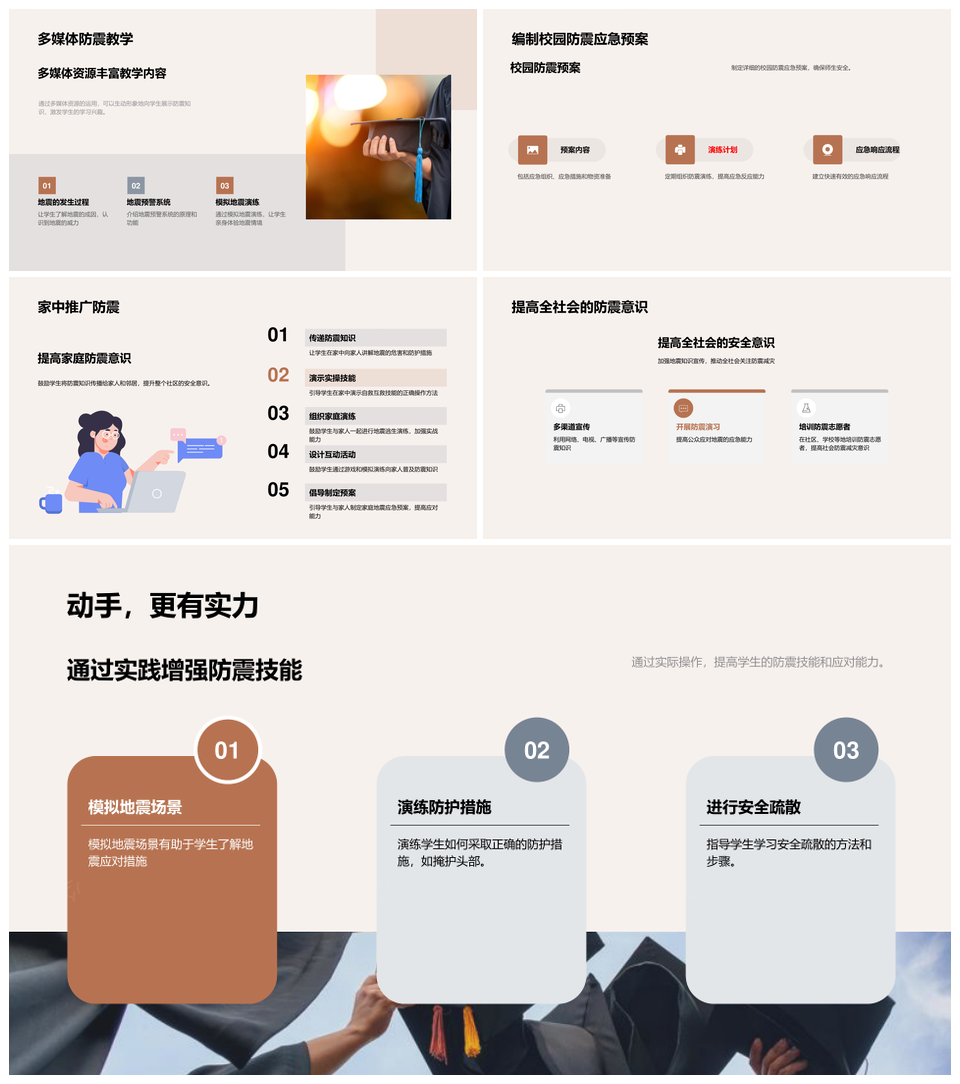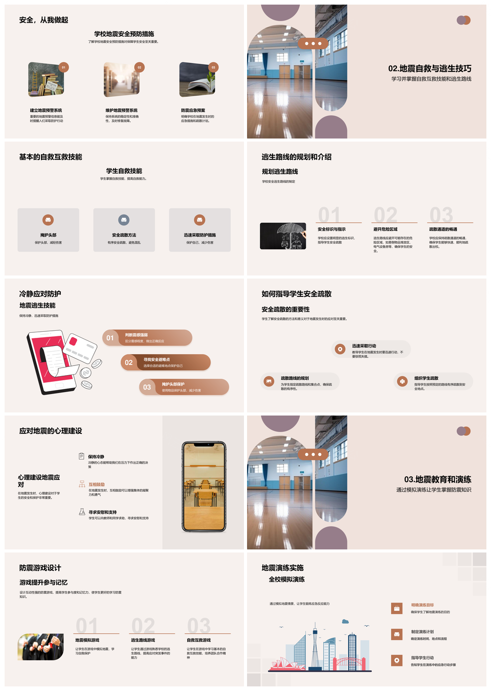 这是一张校园防震安全自救应对建筑监测预警规划PPT模板,包含校园、防震、安全、自救、应对、建筑、监测、预警、规划等主题内容,也可用作校园防震安全自救、防震安全自救应对、安全自救应对建筑、自救应对建筑监测、应对建筑监测预警、建筑监测预警规划、校园防震安全、防震安全自救、安全自救应对、自救应对建筑、应对建筑监测、建筑监测预警、监测预警规划、校园防震、防震安全等PPT场景使用。 风云办公提供的校园防震安全自救应对建筑监测预警规划PPT模板,下载格式为pptx,一共33页,作品中文字及图均可以修改和编辑,图片更改请在作品中右键图片并更换,文字修改请直接点击文字进行修改。