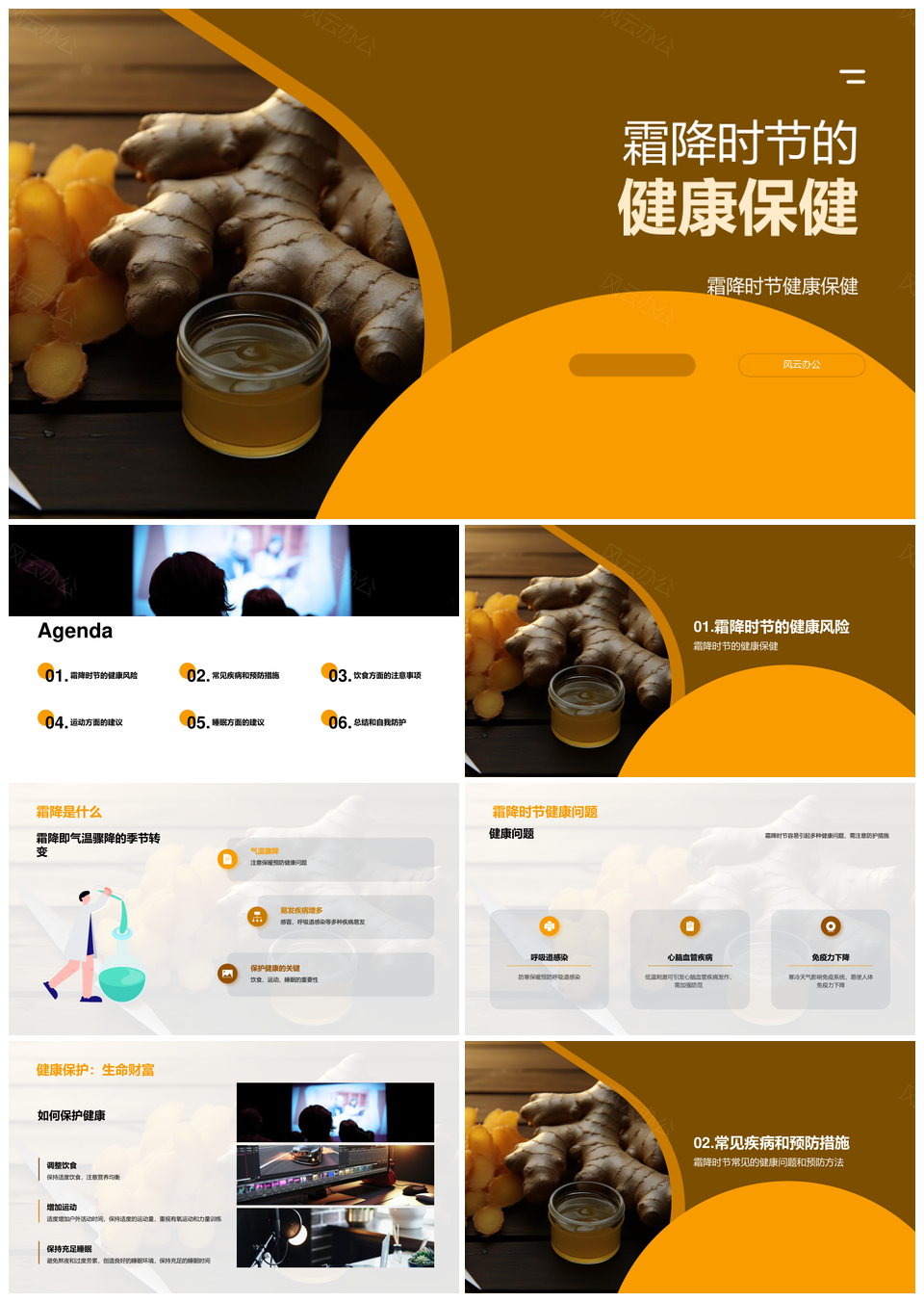 霜降保健防感冒呼吸道心脑血管疾病饮食姜PPT模板推荐