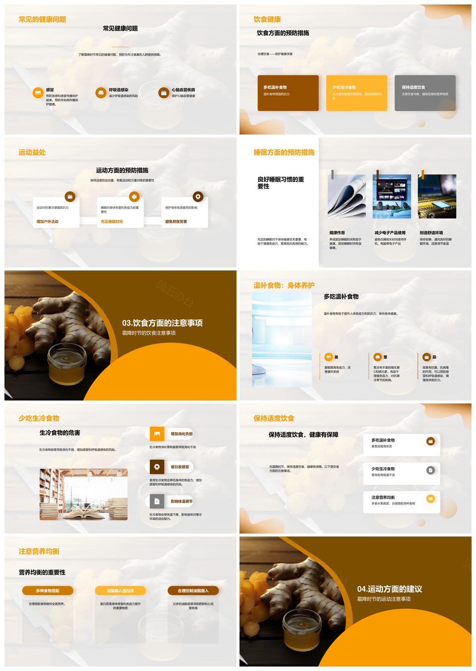 霜降保健防感冒呼吸道心脑血管疾病饮食姜PPT模板
