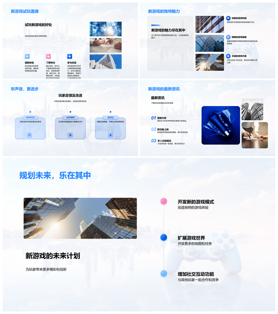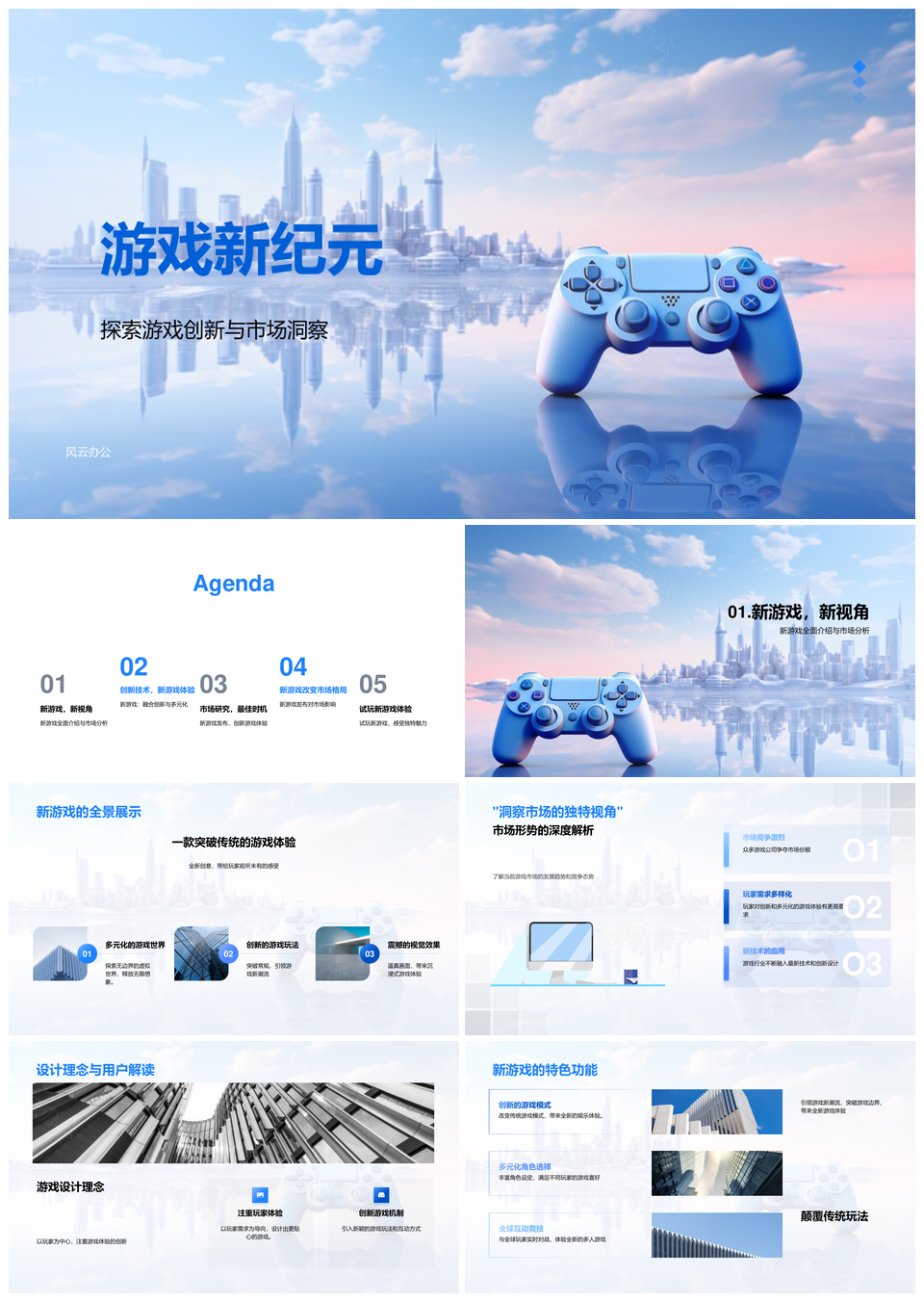 这是一张游戏创新技术驱动市场趋势重塑玩家体验PPT模板,包含游戏、创新技术、驱动、市场趋势、重塑、玩家体验等主题内容,也可用作游戏创新技术驱动、创新技术驱动市场、技术驱动市场趋势、驱动市场趋势重塑、市场趋势重塑玩家、趋势重塑玩家体验、游戏创新技术、创新技术驱动、技术驱动市场、驱动市场趋势、市场趋势重塑、趋势重塑玩家、重塑玩家体验、游戏创新、技术驱动、市场趋势等PPT场景使用。 风云办公提供的游戏创新技术驱动市场趋势重塑玩家体验PPT模板,下载格式为pptx,一共33页,作品中文字及图均可以修改和编辑,图片更改请在作品中右键图片并更换,文字修改请直接点击文字进行修改。