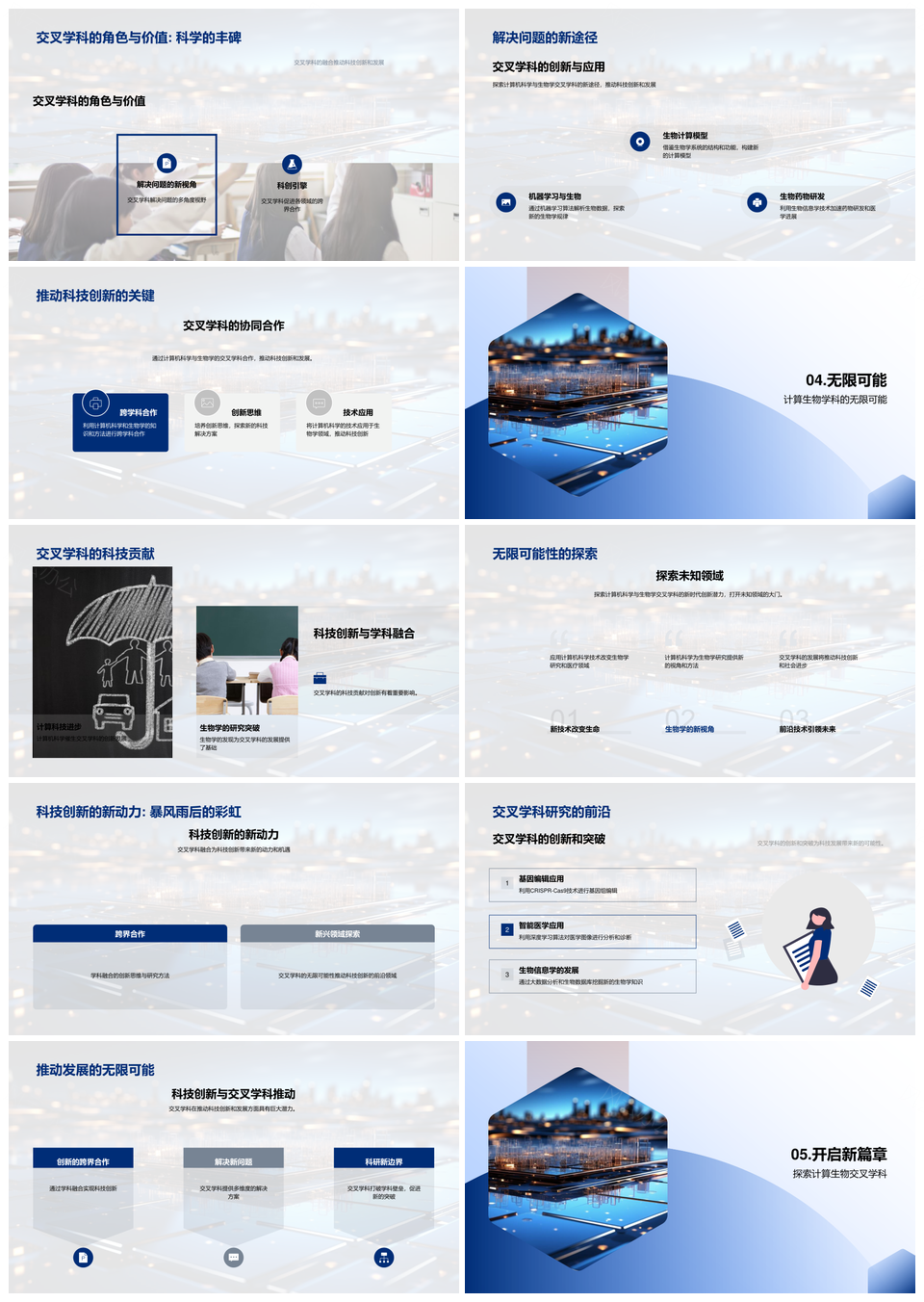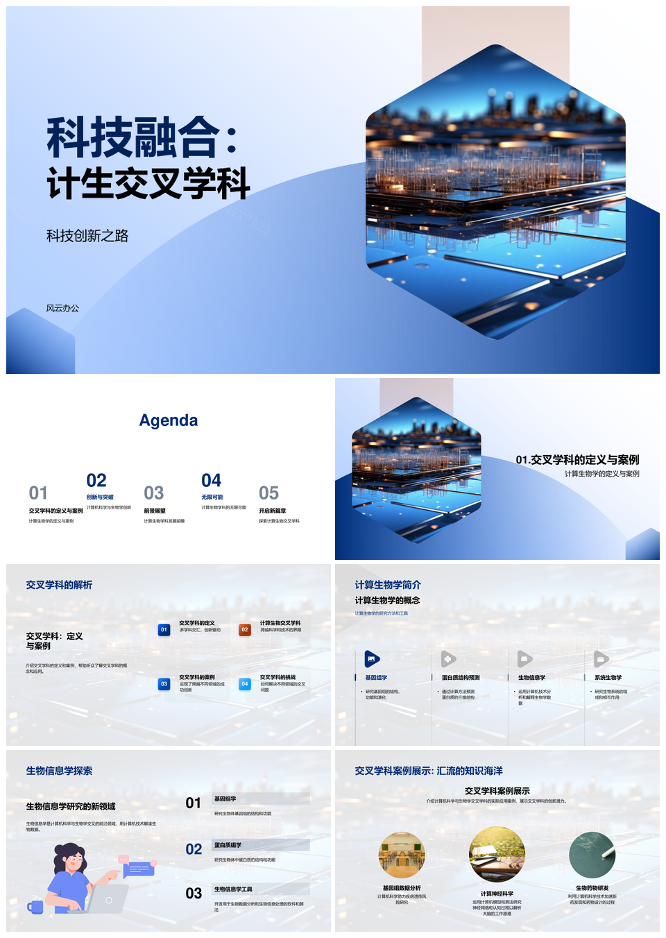 风云办公提供的科技融合驱动交叉学科生物计算创新PPT模板,下载格式为pptx,一共33页,作品中文字及图均可以修改和编辑,图片更改请在作品中右键图片并更换,文字修改请直接点击文字进行修改。