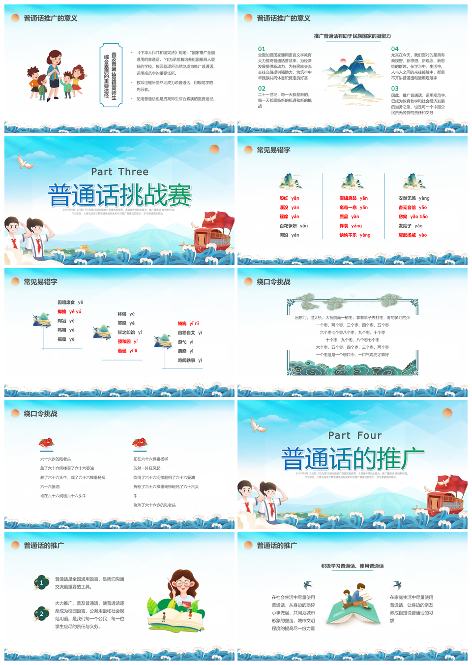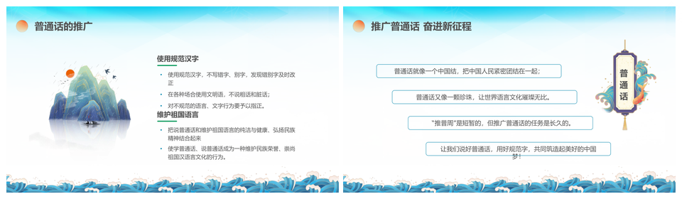2025蓝绿国潮普通话班会挑战赛宣传周PPT模板推荐