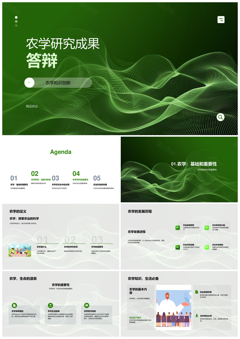 风云办公提供的农学创新成果答辩与科技应用发展PPT模板,下载格式为pptx,一共28页,作品中文字及图均可以修改和编辑,图片更改请在作品中右键图片并更换,文字修改请直接点击文字进行修改。
