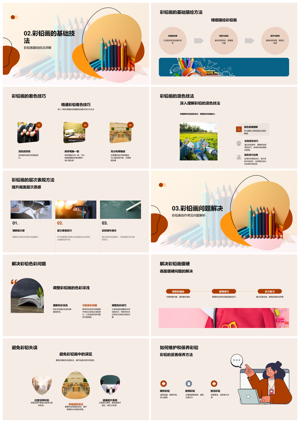 彩铅画材料技法与着色混色层次问题全解PPT模板推荐