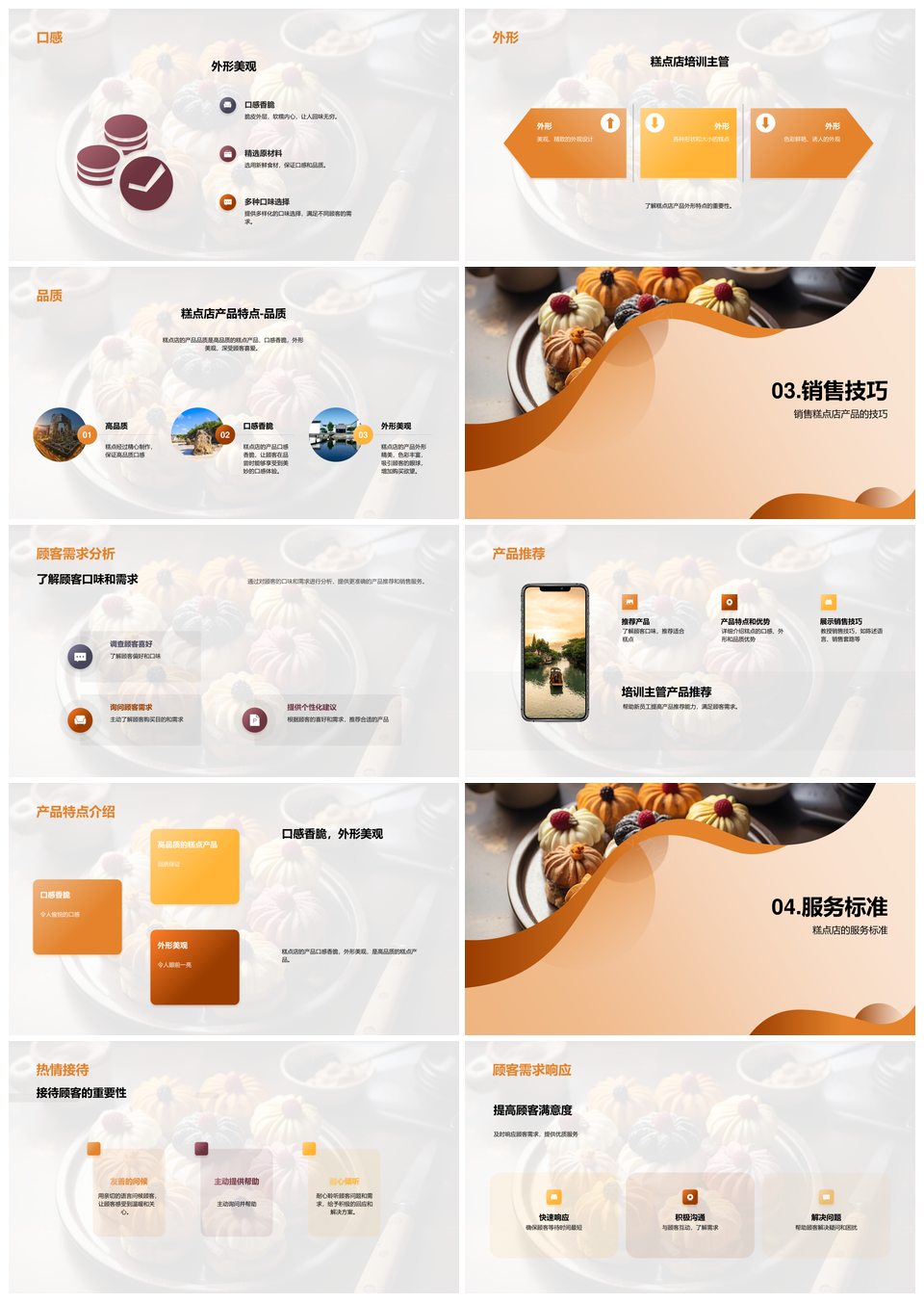 这是一张糕点店新员工产品知识销售技巧培训PPT模板,包含糕点店、新员工、产品知识、销售技巧、培训等主题内容,也可用作糕点店新员工产品知识销售技巧、糕点店新员工产品知识培训、新员工产品知识销售技巧培训、产品知识销售技巧培训糕点店、糕点店产品知识销售技巧培训、新员工销售技巧培训糕点店、产品知识培训新员工糕点店、糕点店新员工销售技巧培训、销售技巧培训糕点店新员工、新员工产品知识销售技巧、产品知识销售技巧培训、糕点店新员工培训、销售技巧培训糕点店、新员工产品知识培训、产品知识销售技巧等PPT场景使用。