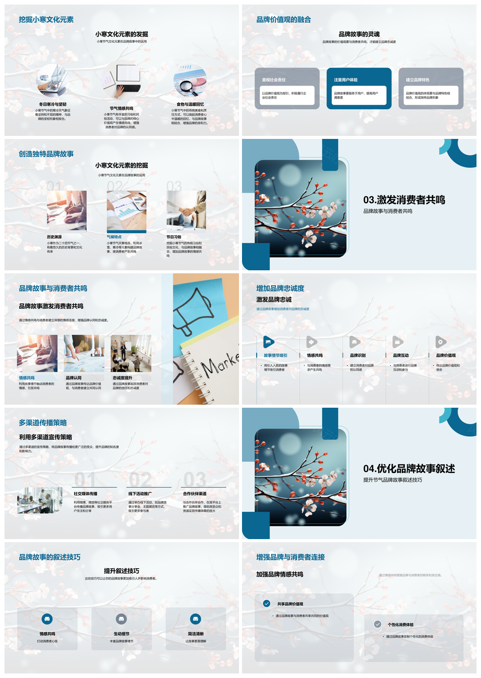 风云办公提供的小寒雪花品牌故事共鸣铸忠诚度PPT模板,下载格式为pptx,一共23页,作品中文字及图均可以修改和编辑,图片更改请在作品中右键图片并更换,文字修改请直接点击文字进行修改。