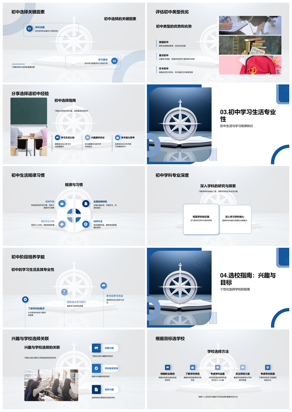 初中选校升学规划学科兴趣指南PPT模板推荐