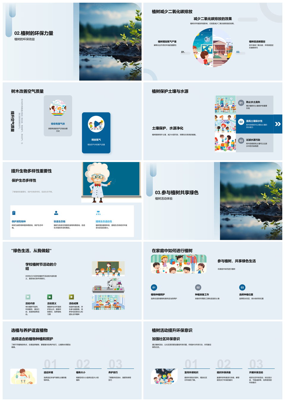 风云办公提供的植树节护水土减碳增绿保生物多样性PPT模板,下载格式为pptx,一共28页,作品中文字及图均可以修改和编辑,图片更改请在作品中右键图片并更换,文字修改请直接点击文字进行修改。