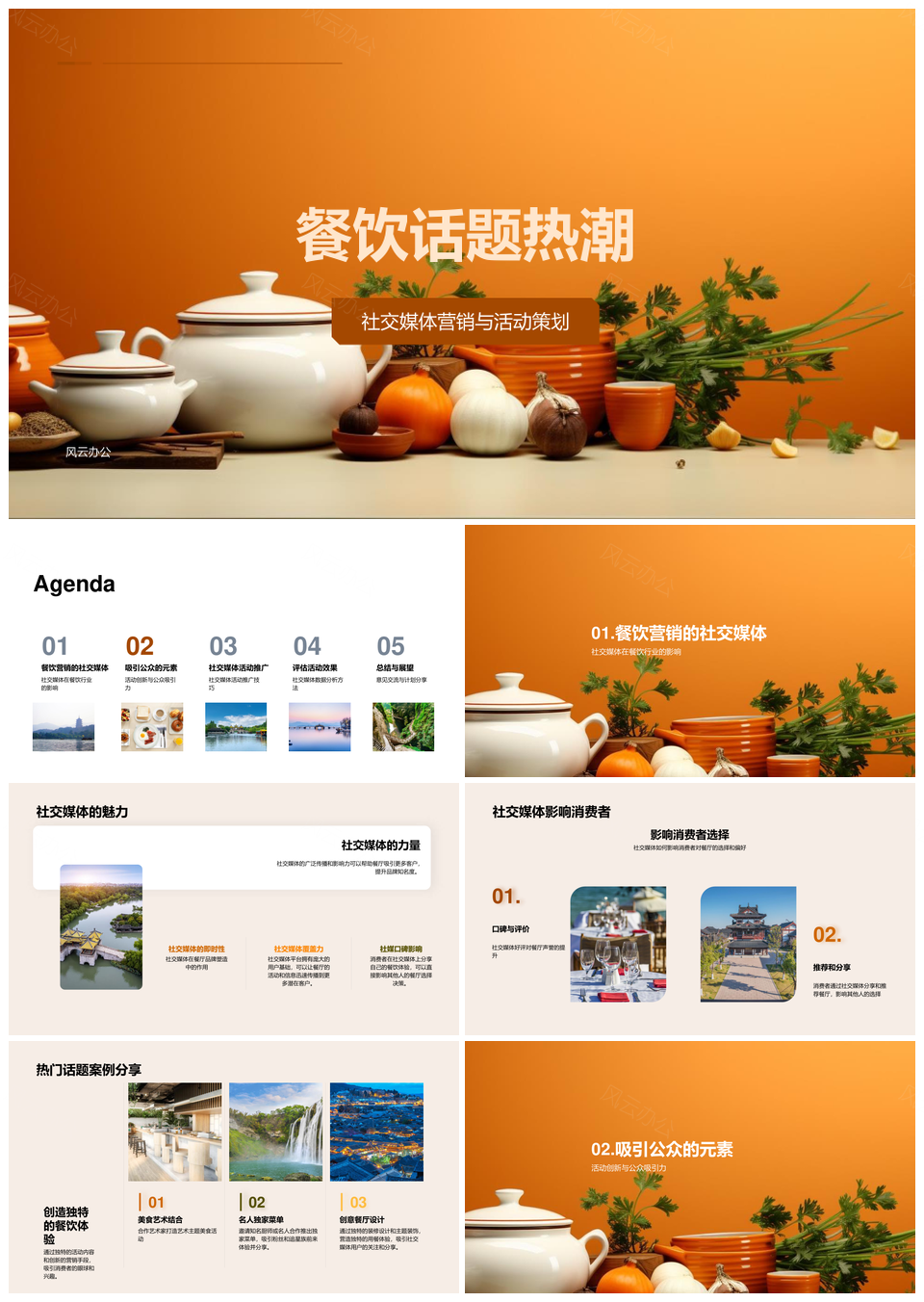餐饮话题社交媒体营销活动策划热潮PPT模板推荐