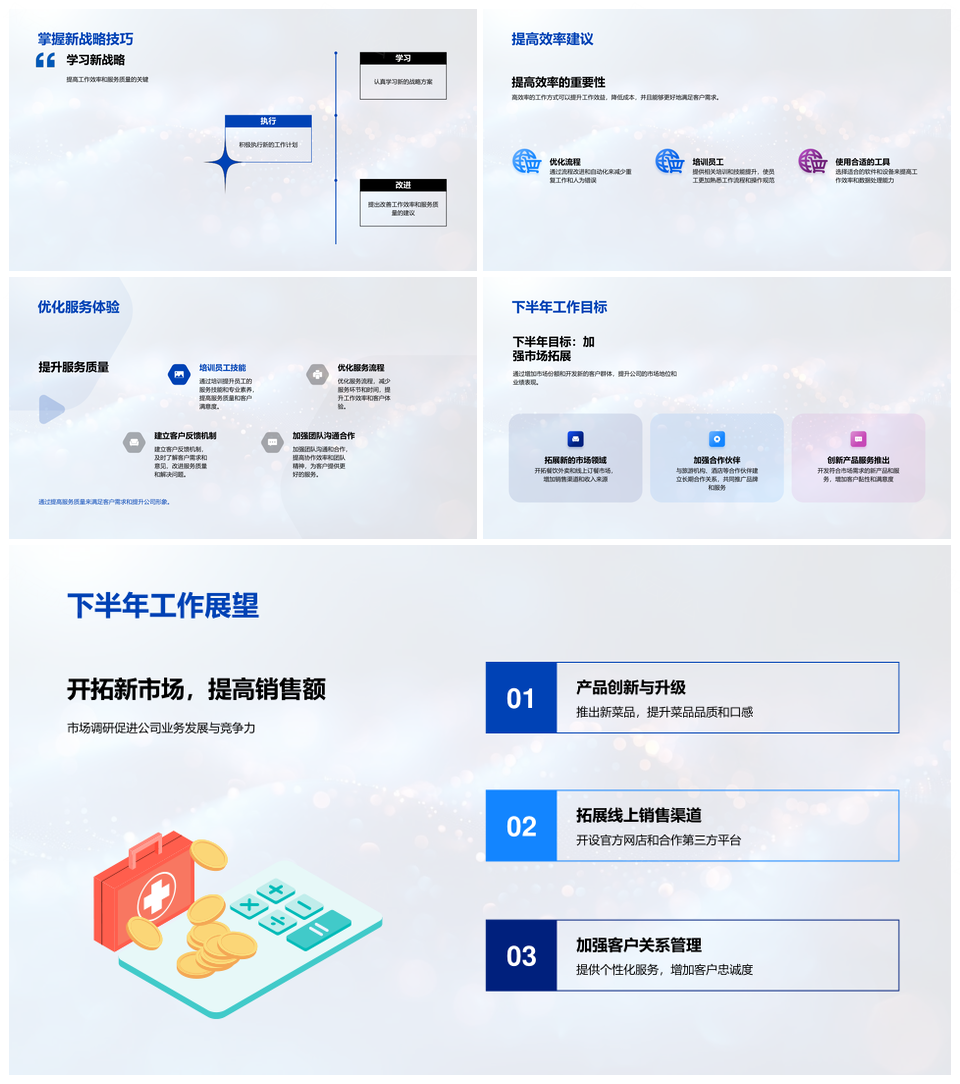 这是一张2025餐饮半年业绩战略调整团队协作趋势汇报PPT模板,包含2025、餐饮、半年、业绩、战略、调整、团队、协作、趋势、汇报等主题内容,也可用作2025餐饮半年业绩战略调整、餐饮半年业绩战略调整、半年业绩战略调整团队、业绩战略调整团队协作、战略调整团队协作趋势、调整团队协作趋势汇报、团队协作趋势汇报、2025餐饮战略调整团队、餐饮战略调整团队协作、战略调整团队协作、2025餐饮团队协作趋势、半年业绩战略调整、业绩战略团队协作、调整协作趋势汇报、团队协作汇报等PPT场景使用。 风云办公提供的2025餐饮半年业绩战略调整团队协作趋势汇报PPT模板,下载格式为pptx,一共33页,作品中文字及图均可以修改和编辑,图片更改请在作品中右键图片并更换,文字修改请直接点击文字进行修改。
