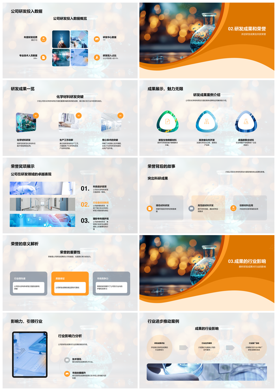 风云办公提供的化学材料研发成果荣誉及行业推动作用PPT模板,下载格式为pptx,一共33页,作品中文字及图均可以修改和编辑,图片更改请在作品中右键图片并更换,文字修改请直接点击文字进行修改。