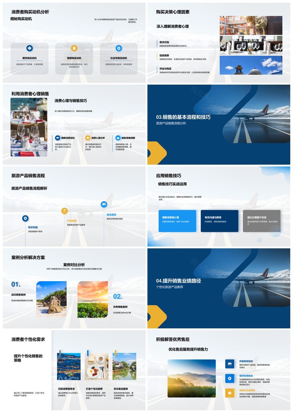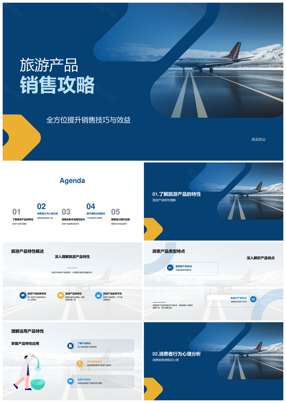 风云办公提供的旅游产品特性客户心理销售全流程攻略PPT模板,下载格式为pptx,一共23页,作品中文字及图均可以修改和编辑,图片更改请在作品中右键图片并更换,文字修改请直接点击文字进行修改。